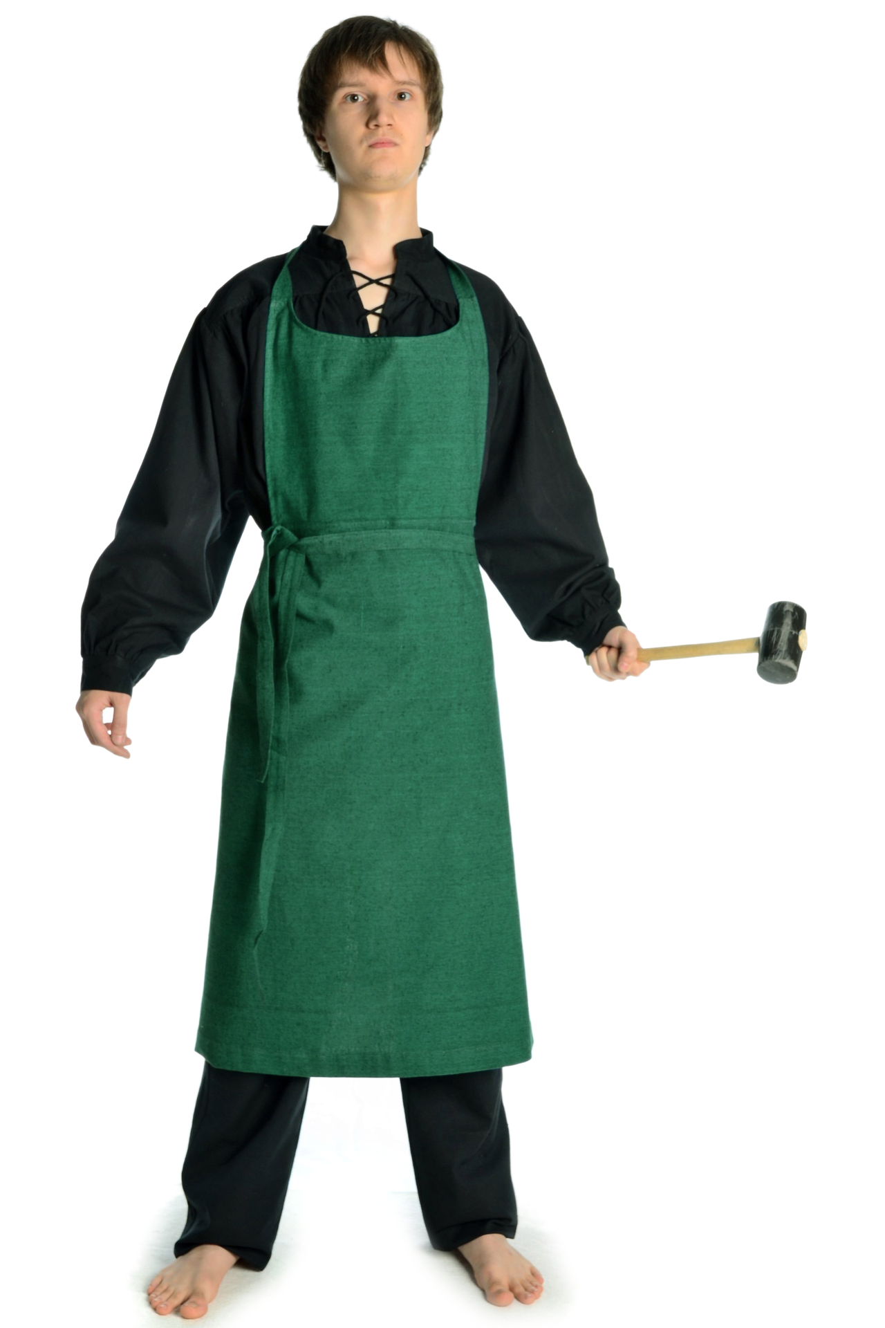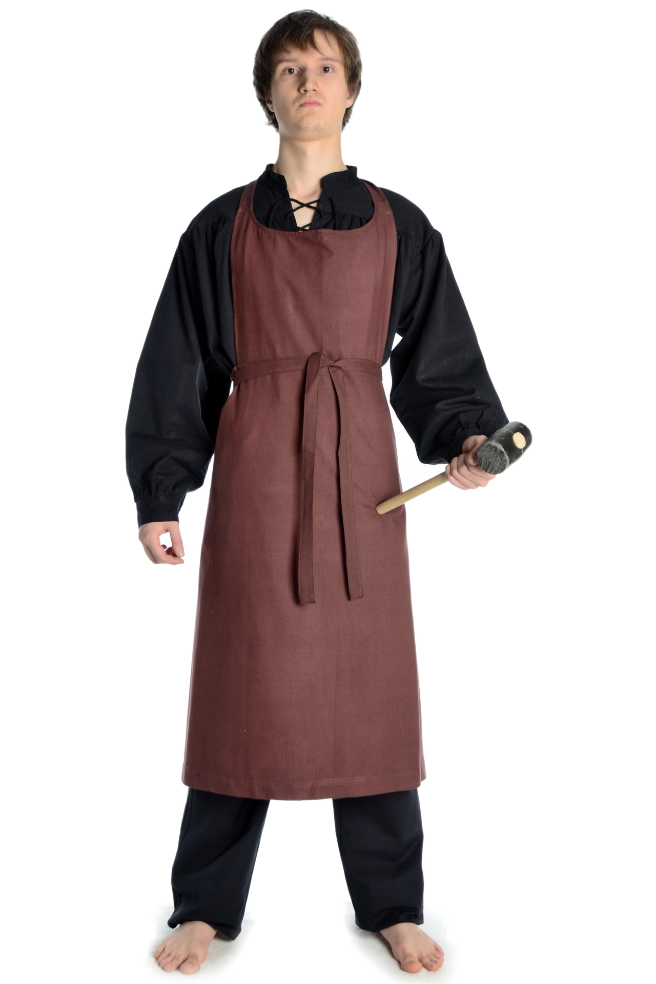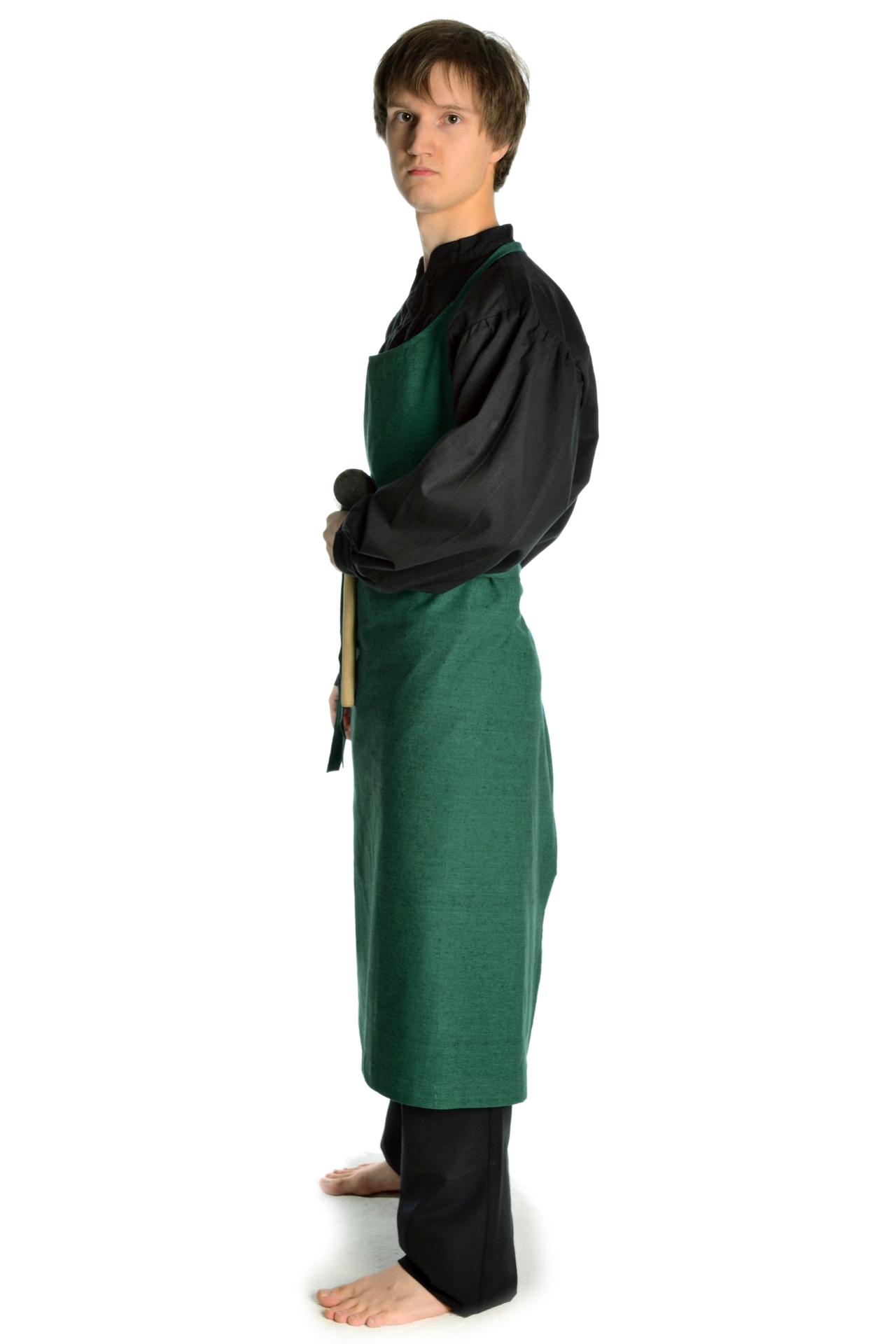 Plain full front maxi-length apron in medieval style. The Apron Dankrat is available in the colors green, red and brown and is one size. The item is made of cotton and machine washable at 40°C. The Medieval apron comes without accessoires.
