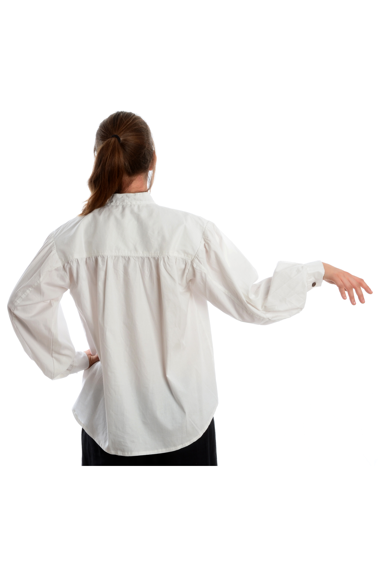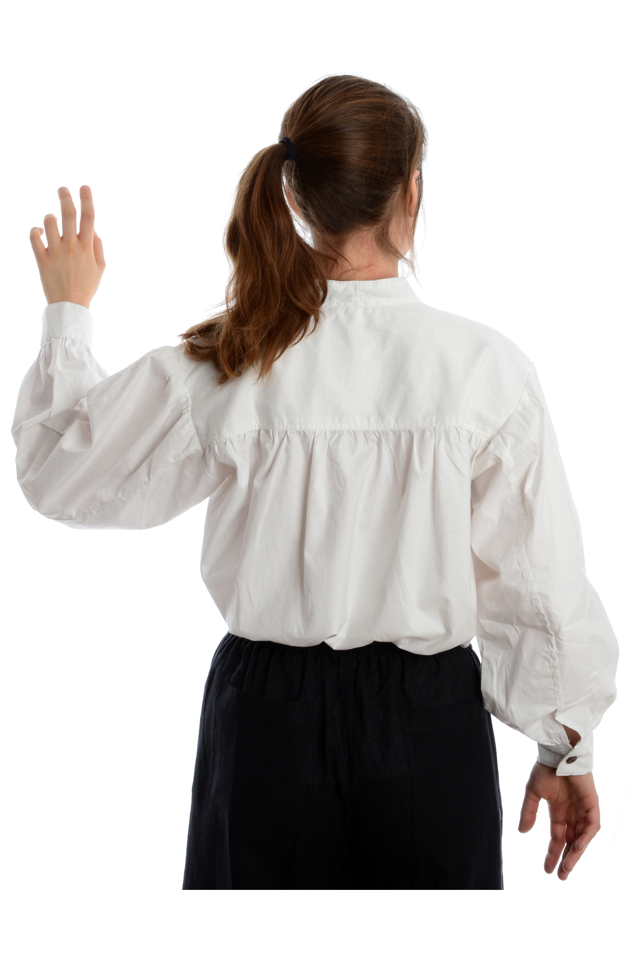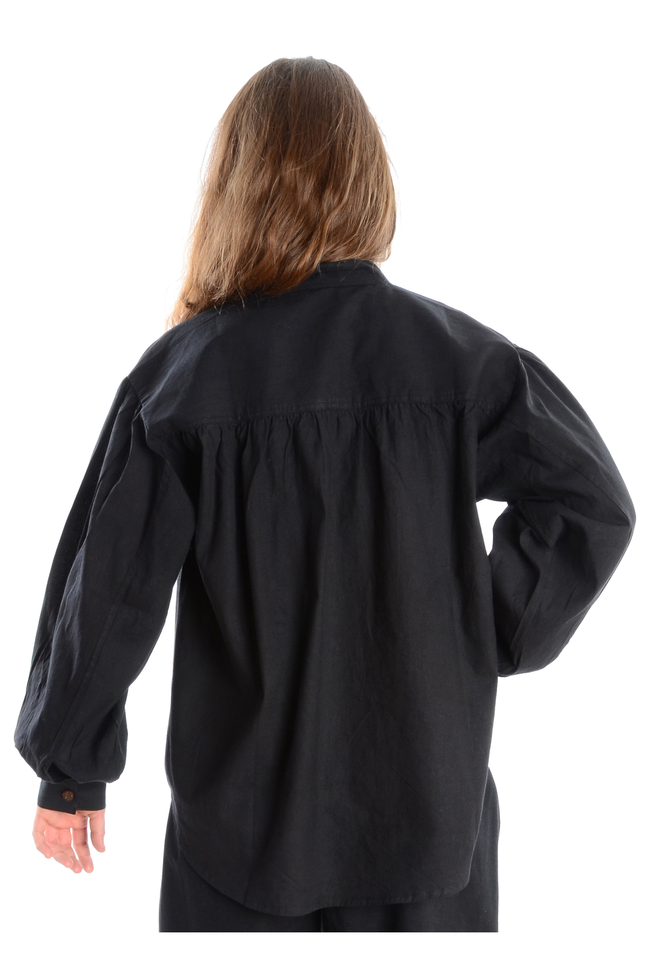 Medieval lace-up blouse loose fit and long puffed sleeves made of thin fabric. The Blouse Ortrun is available in the colors white and black and the sizes S, M, L, XL, XXL and XXXL. The item is made of cotton and machine washable at 40°C. The Medieval blouse comes without accessoires.