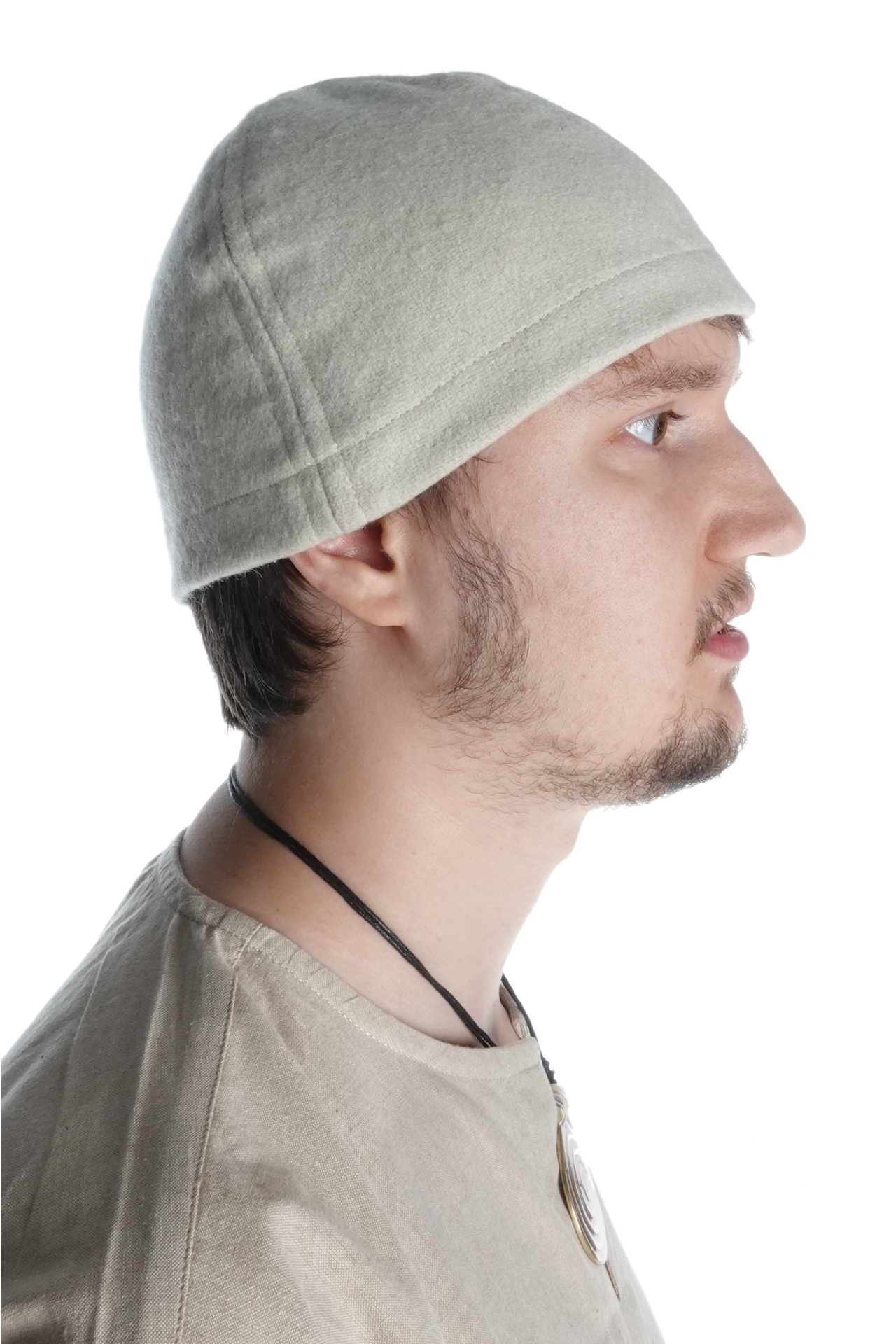 Warming Vikings hat with cotton inner layer. The Hat Fafnir is available in the colors beige, black and brown and the sizes M, L and XL. The item is made of felt. The Vikings hat comes without accessoires.