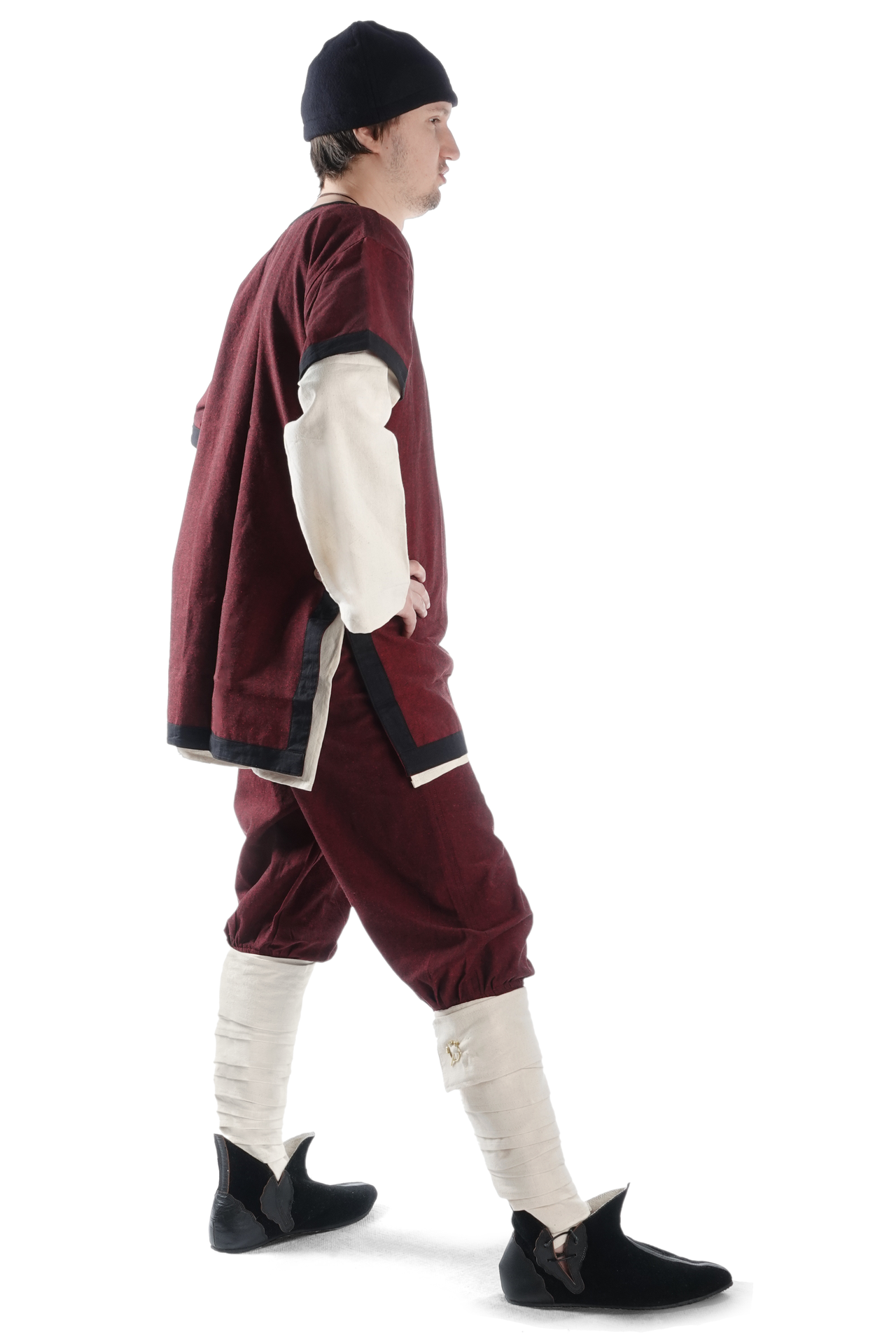This medieval garment is made of authentic natural material. The wool felt is warm and extremely comfortable to wear, and the use of natural fabric is typical for the era of the Middle Ages. With the used fabric of the historic garb impresses with persistence and authenticity. Furthermore, due to the high quality of the robust fabric its durability and sustainability is guaranteed.