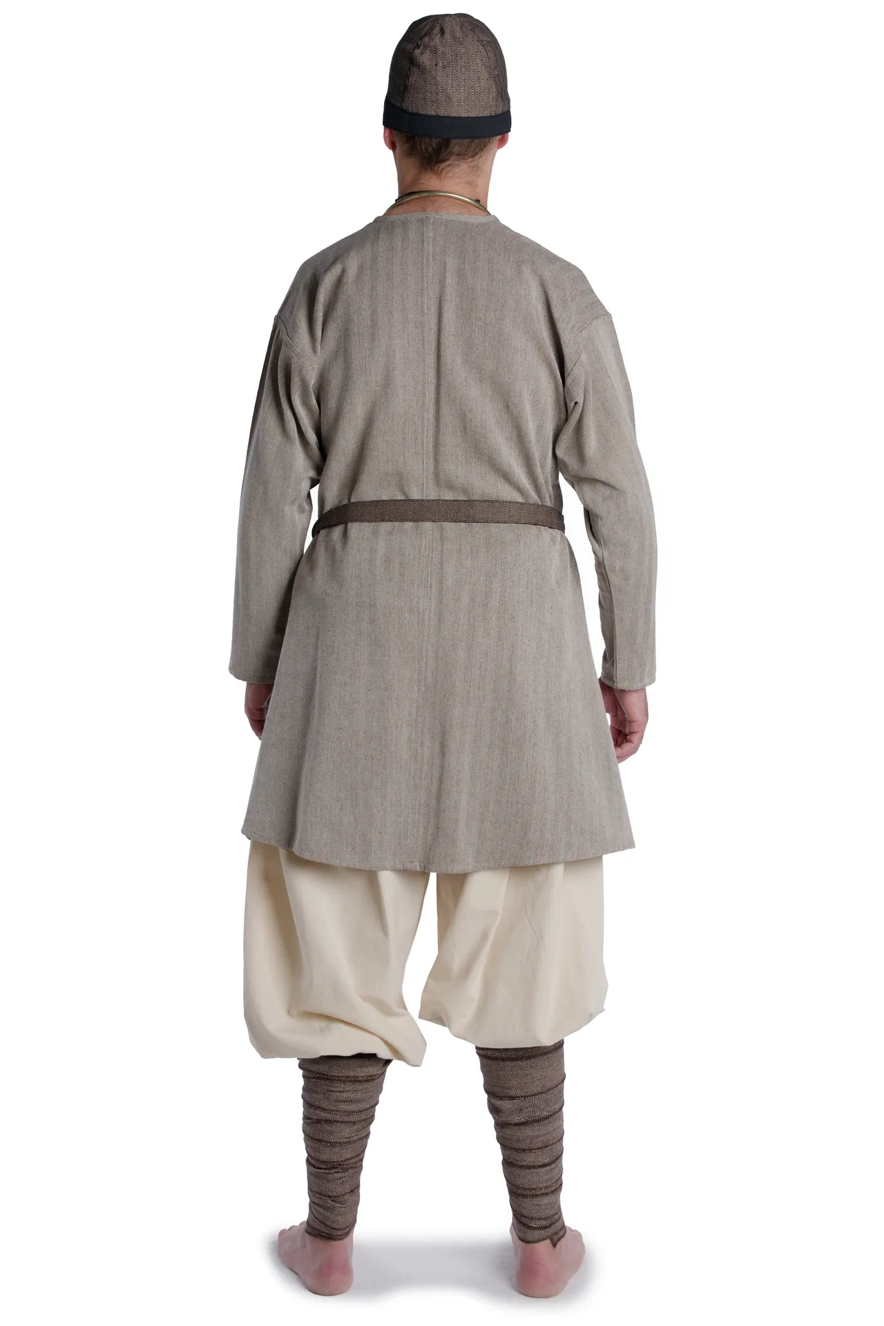 In der Fundstätte Birka lassen sich mehrere verschiedene Kopfbedeckungen der Männertracht der Wikinger nachweisen. Mützen, Hüte und Kappen waren fest verankert in der Herrenbekleidung der Wikinger. Eng anliegende Kappen wie die hier realisierte Kopfbedeckung findet man des Weiteren auf zahlreichen überlieferten Bildquellen des Wikingerkulturkreises, wie z.B. bei den Schnitzereien des Schiffsbegräbnis von Oseberg aus dem 9. Jahrhundert. Aufgrund der günstigen Konservierungsbedingungen für organische Materialien in Haithabu, war es möglich, dort auch Filz-Relikte sicherzustellen. Dies belegt, dass die Wikinger Baumwolle verwendeten, sogar gefärbter Filz wurde nachgewiesen. Es handelte sich auch um verschiedene Beschaffenheiten, was auf unterschiedliche Verwendungsweisen des Textils schließen lässt. Unter anderen entdeckten die Archäologen viele Zuschneidereste, deswegen wird angenommen, dass in Haithabu selbst Baumwolle produziert und weiterverarbeitet wurde.