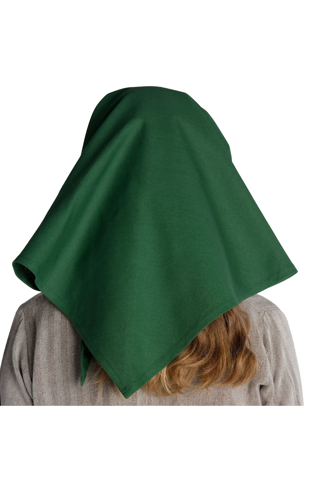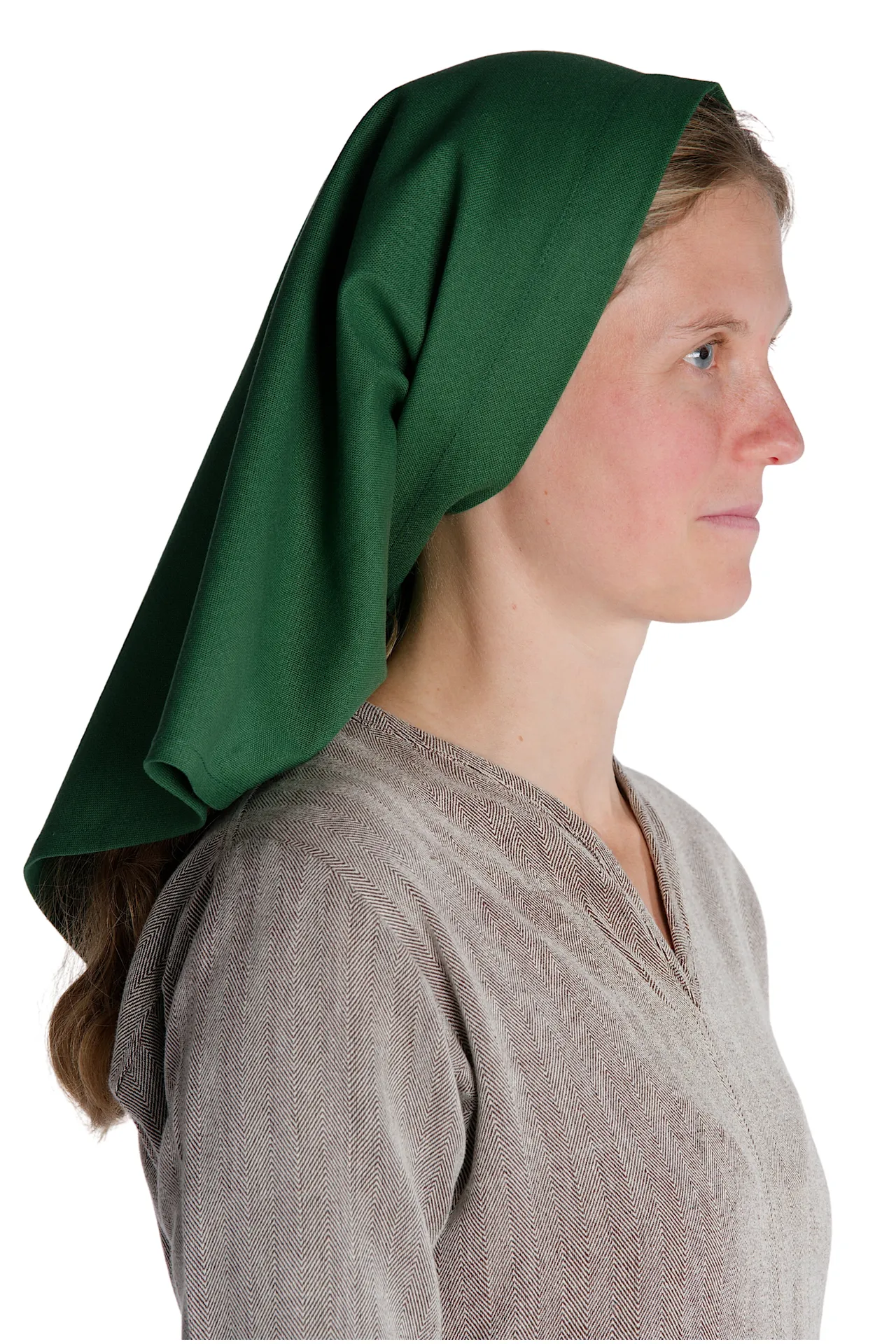 Versatile headscarf in triangular shape in the style of the Middle Ages. The Headscarf Laudamie is available in the colors beige, black, green, red, blue and brown and is one size. The item is made of cotton and machine washable at 40°C. The Medieval headscarf comes without accessoires.