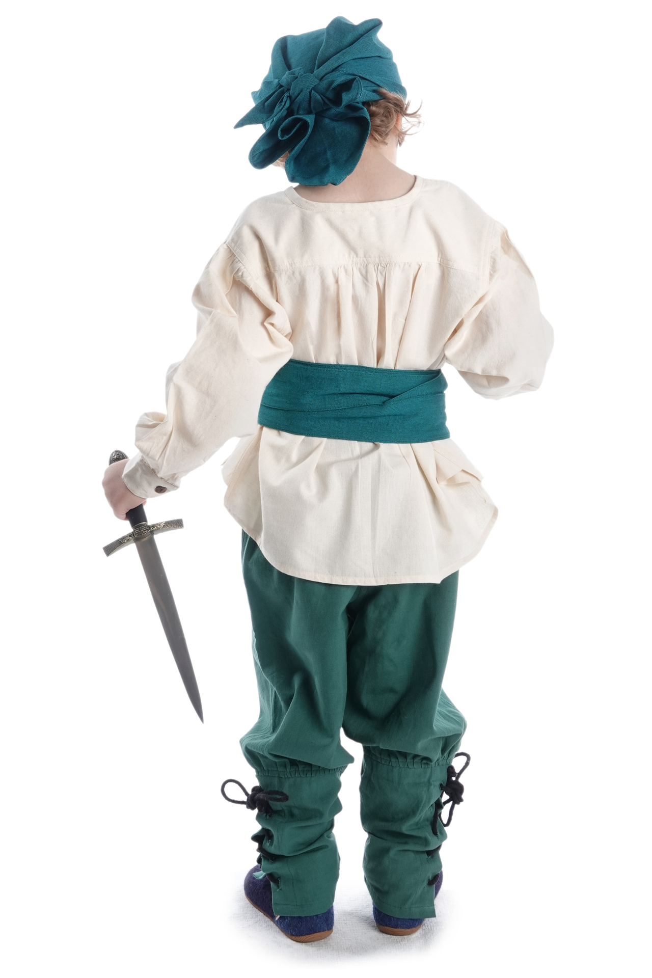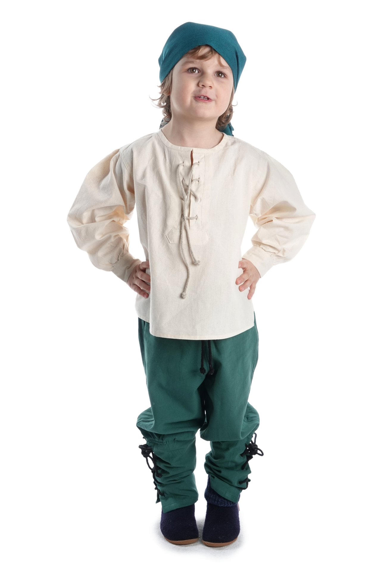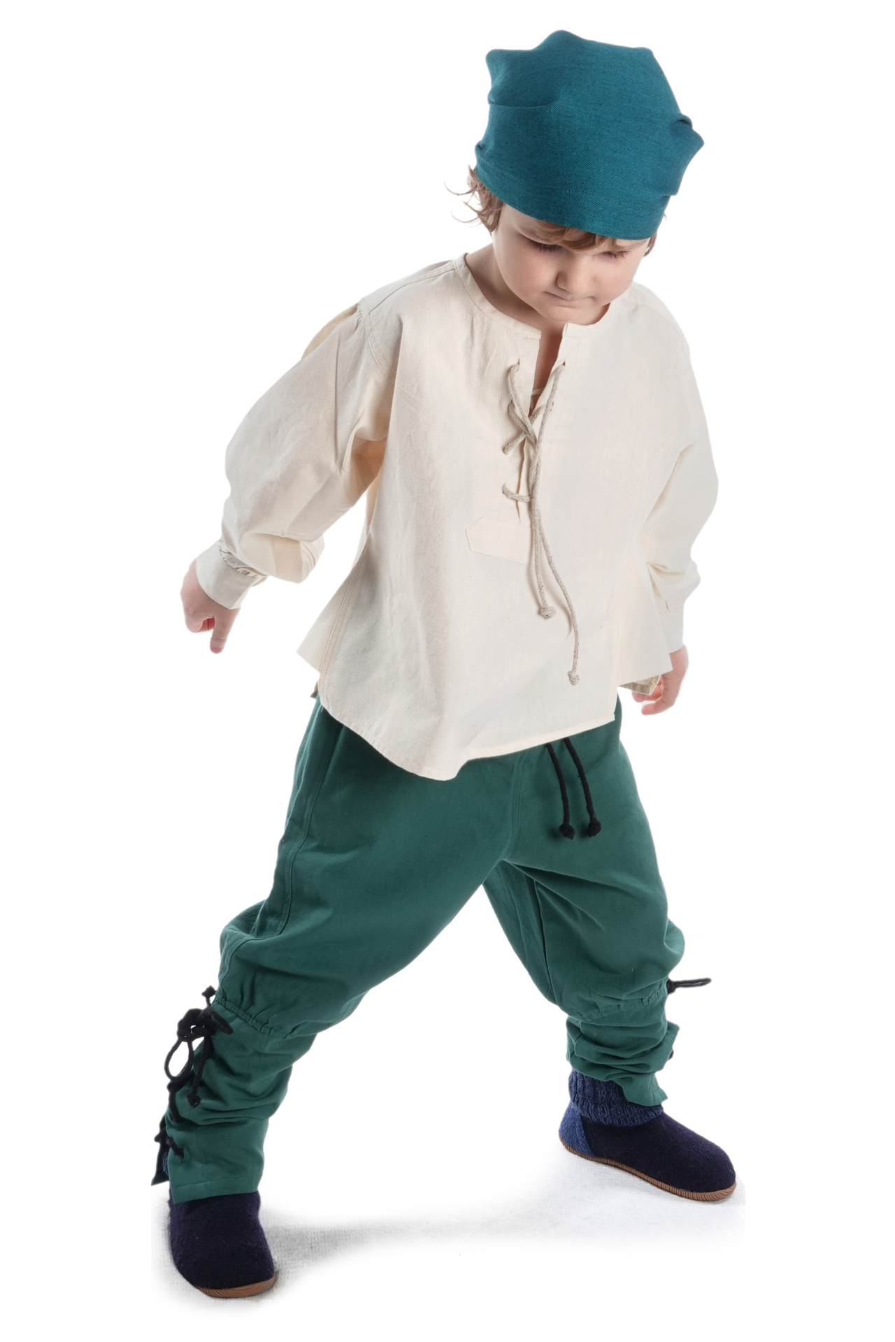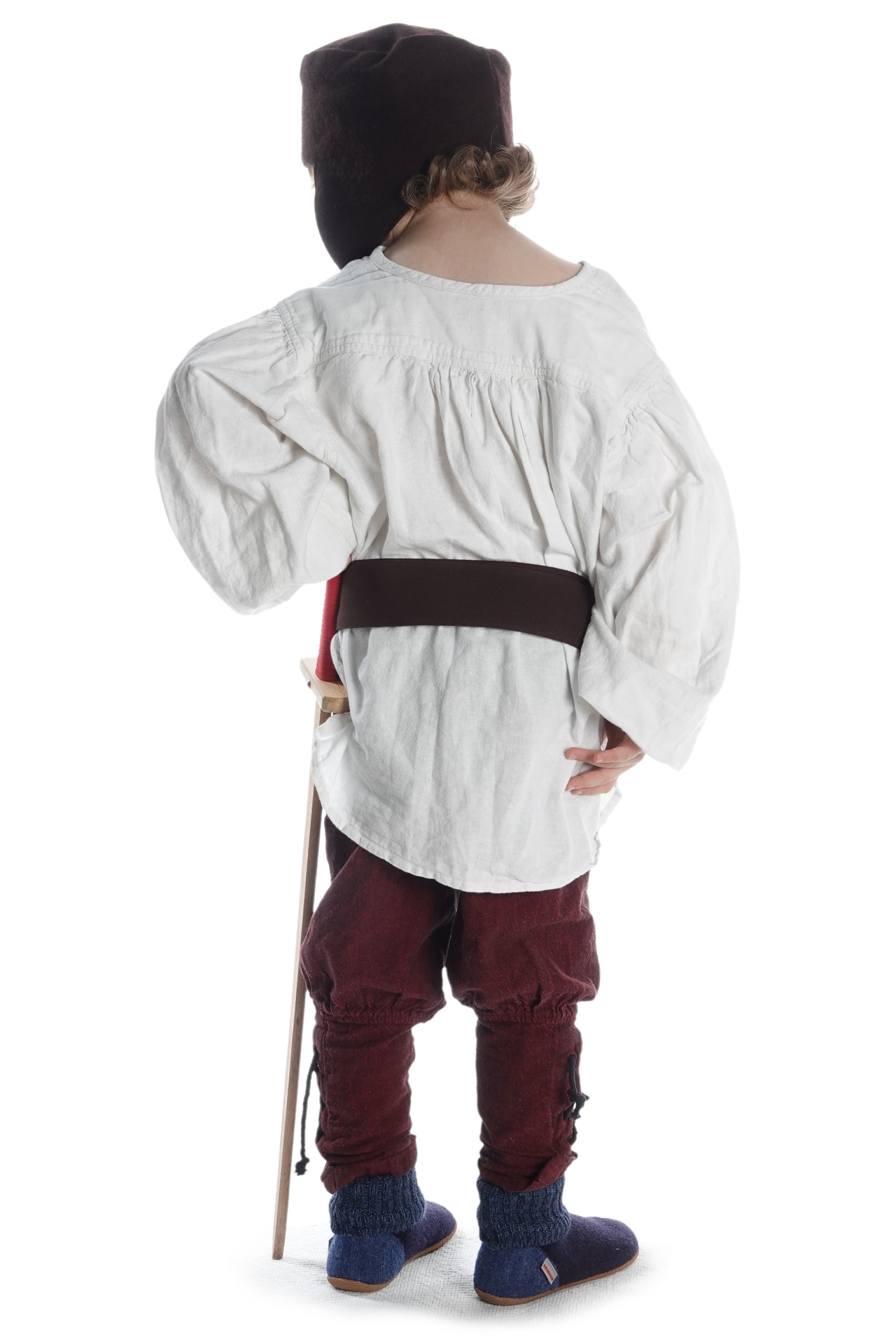 With the historic Kids lace-up Shirt Parzival are you well dressed at medieval events of all kinds, as the kids shirt can be combined in many ways. The medieval garment can be worn for visiting Medieval markets, LARP/fantasy events, role-playing, re-enactment, Halloween or carnival. The kids shirt is suitable and comfortable at the same time, as well it is perfectly suitable for movement such as required for role-playing or reenactment of a battle.