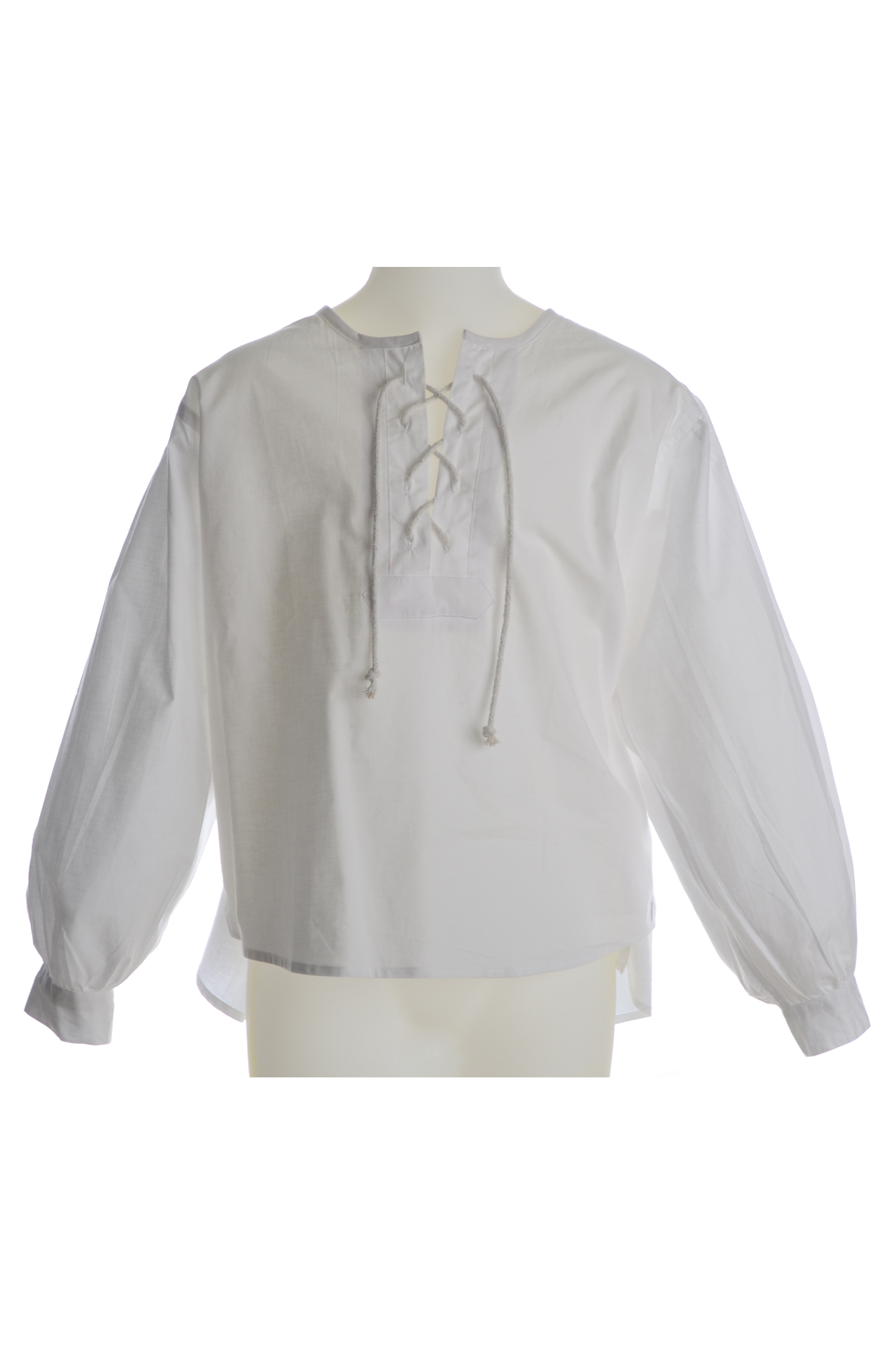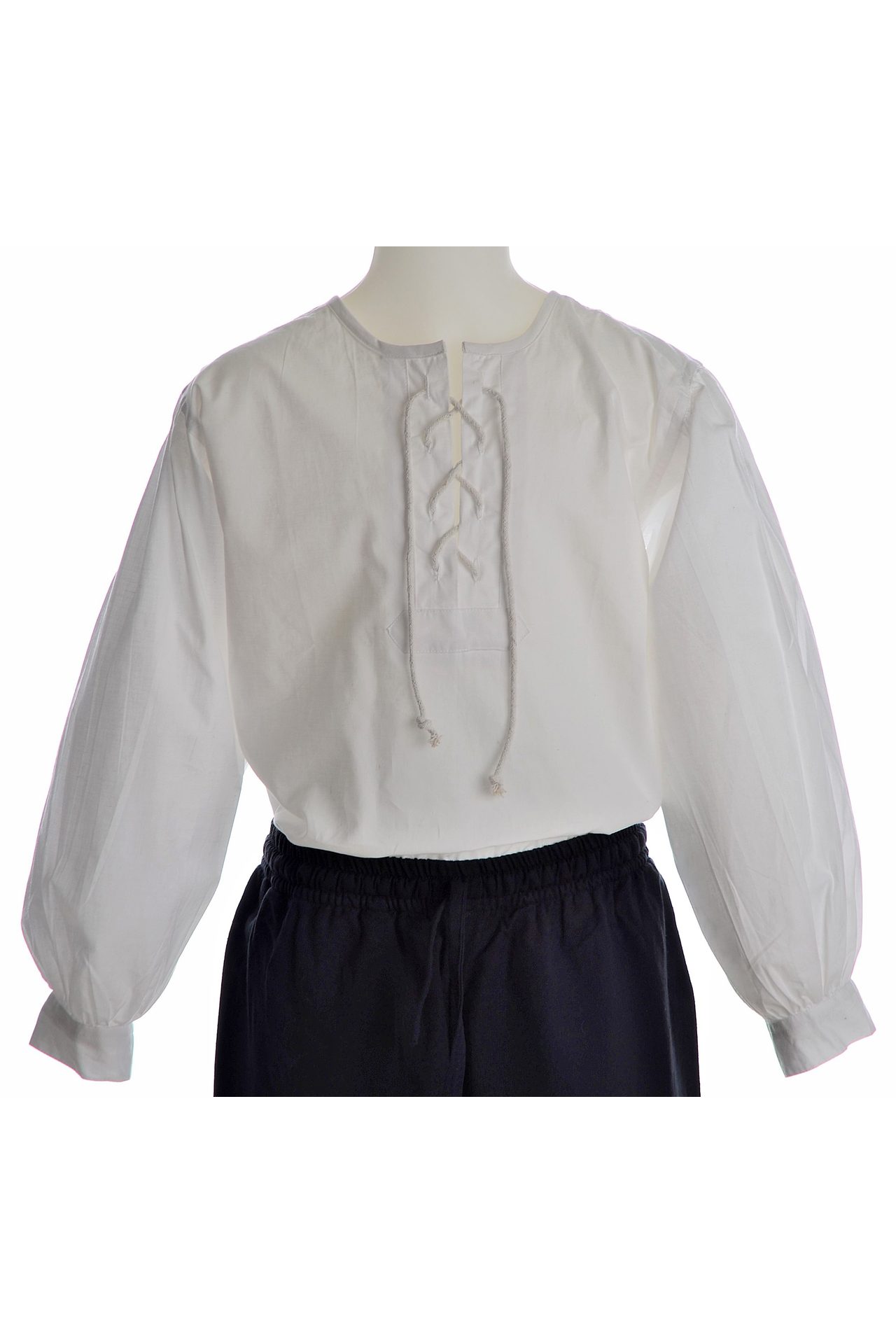 Medieval kids shirt with strings, loose fit and long sleeves. The Kids lace-up Shirt Parzival is available in the colors beige and white and the sizes S, M, L, XL, XXL and XXXL. The item is made of cotton and machine washable at 40°C. The Medieval kids shirt comes without accessoires.