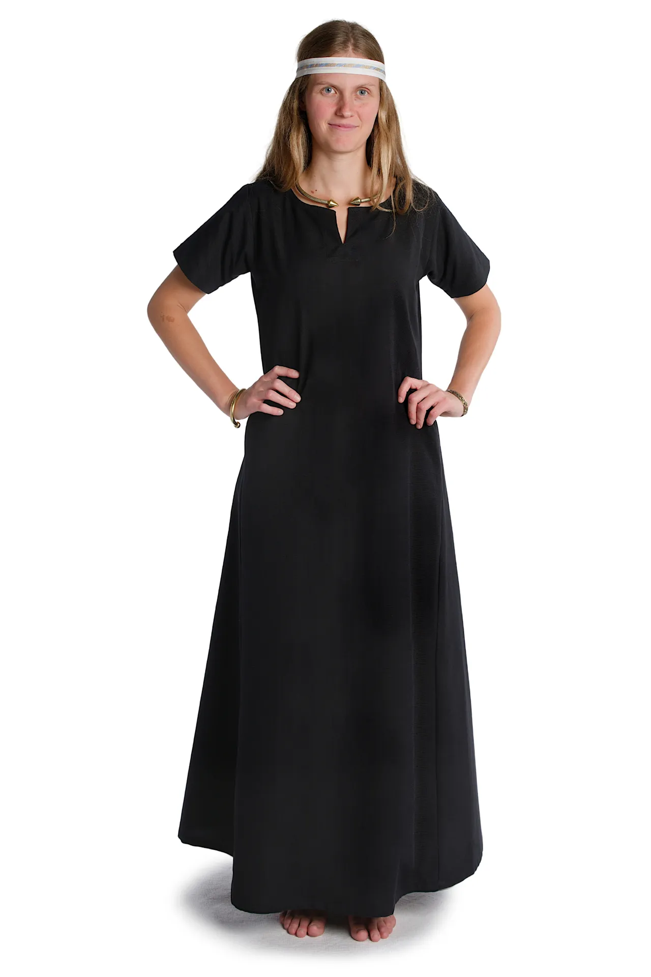 Der historische, reduzierte und bequeme Schnitt von Kleid „Hrist“ ohne störende Taschen, Knöpfe oder Reißverschlüsse machen diese historische Gewandung zum zur perfekten Begleiter für Mittelaltermärkte und andere Veranstaltungen wie LARP-Events, Rollenspiel, Reenactment oder Karnevalsfeierlichkeiten.