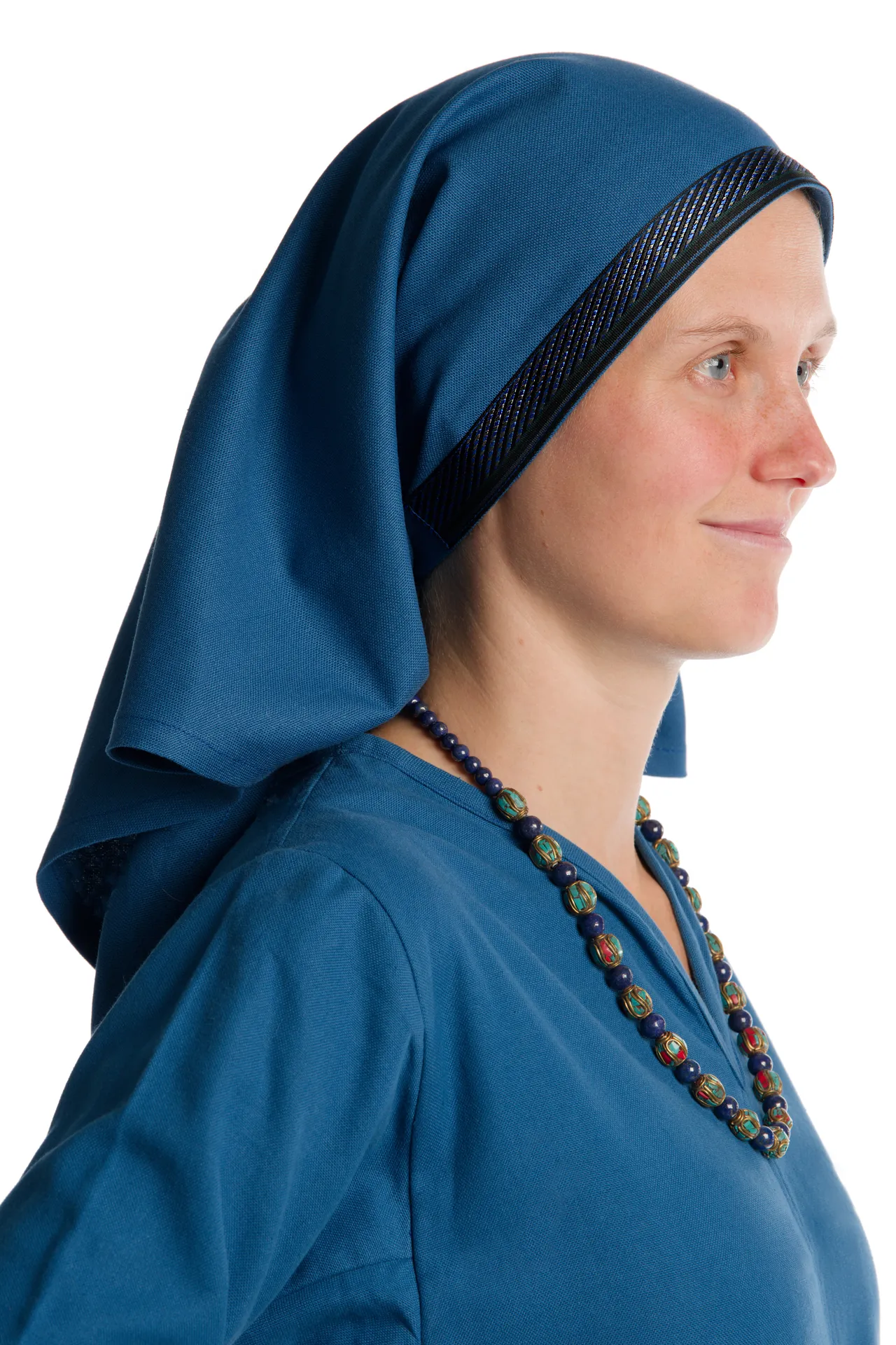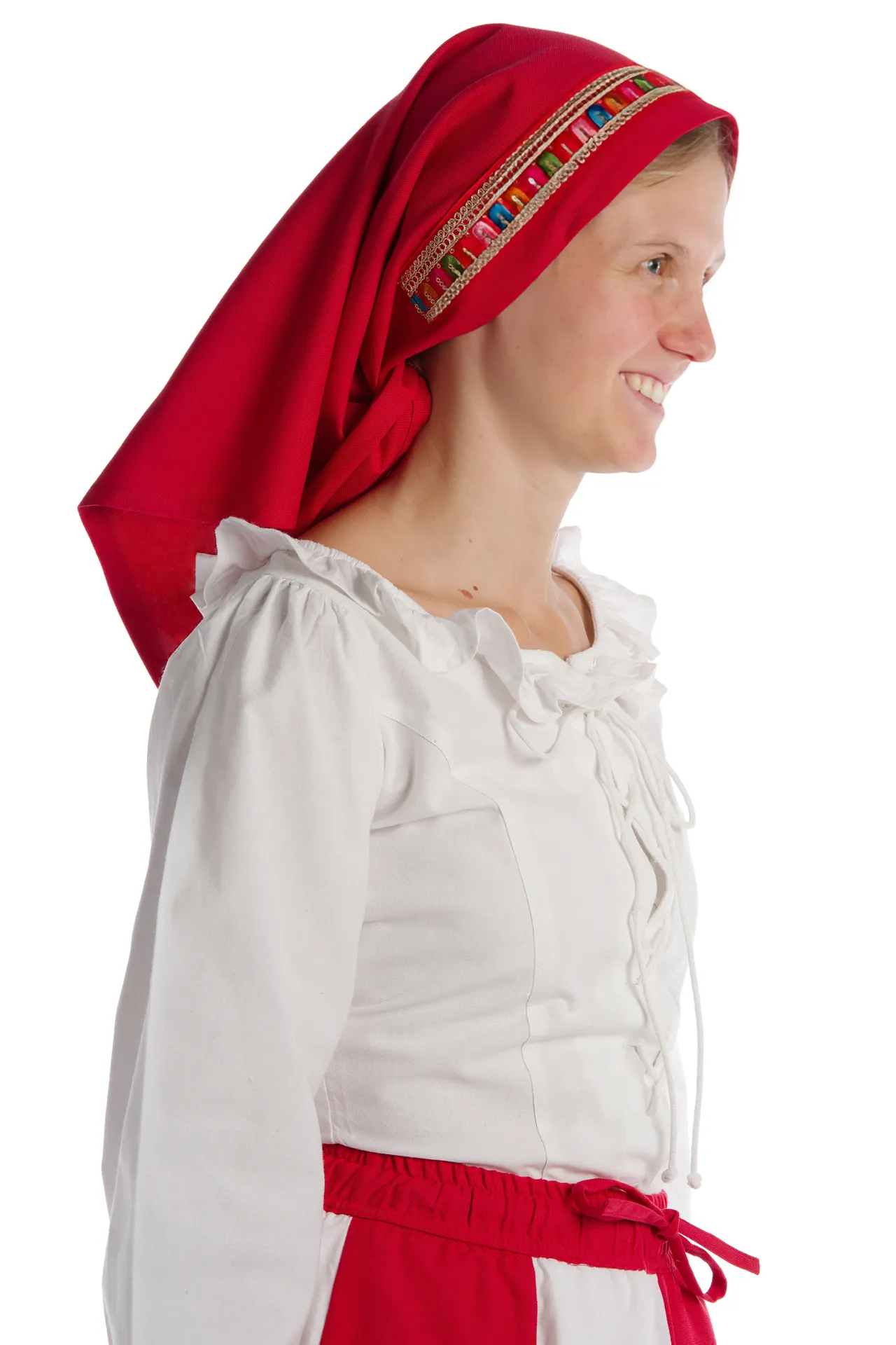 Eine beliebte Variante der mittelalterlichen Kopfbedeckungen für Frauen war das Kopftuch. Es wurde von Frauen getragen und das gesamte Haupthaar konnte versteckt werden. Kopfbedeckungen waren fester Bestandteil der historischen mittelalterlichen Damengewandung. Vor allem vereheiratete Frauen trugen in der Öffentlichkeit stets Hauben, Schapelle oder Kopftücher.