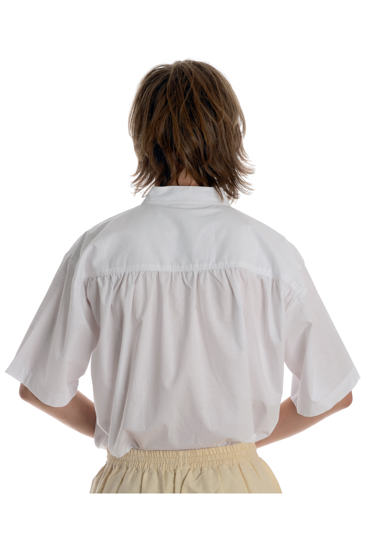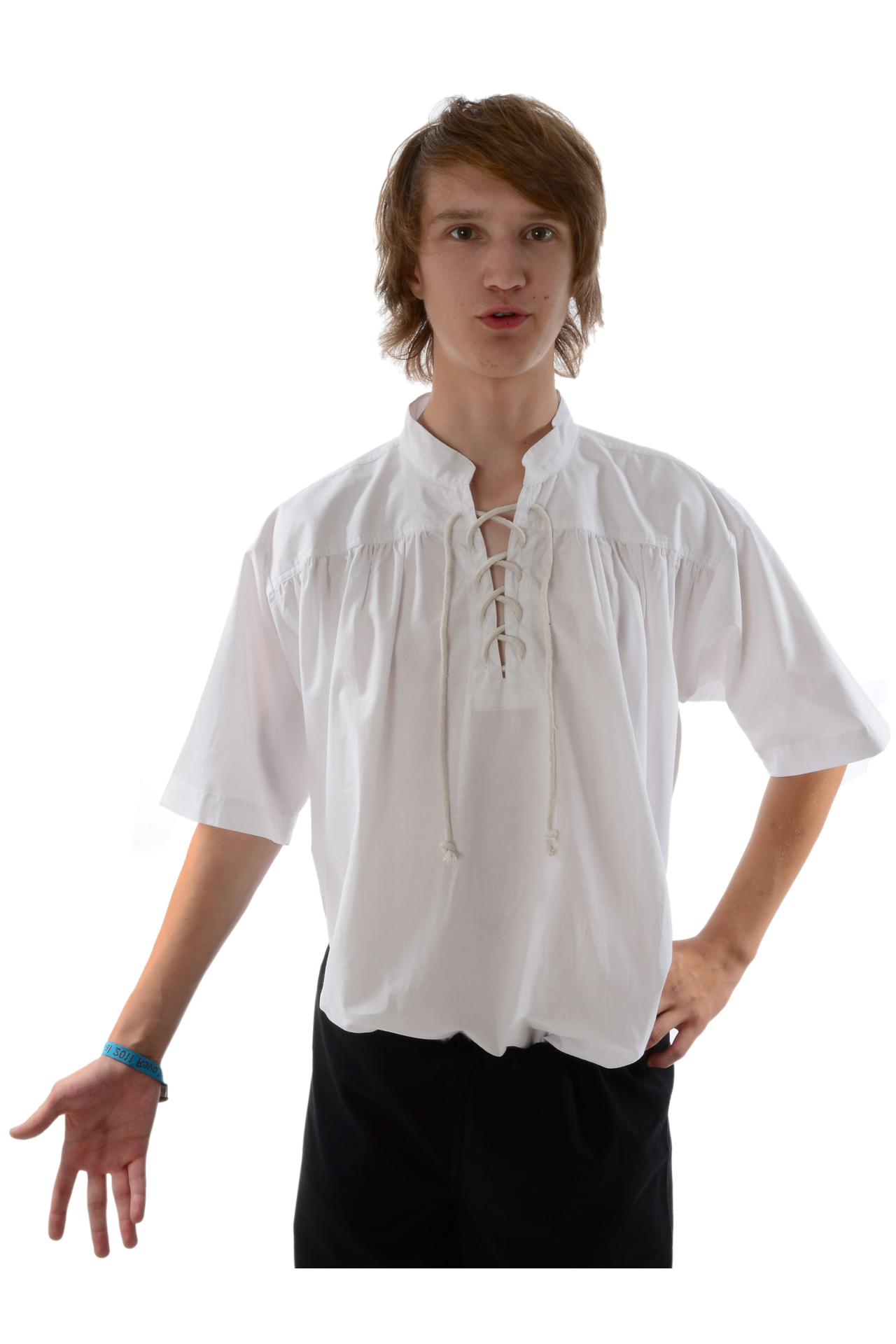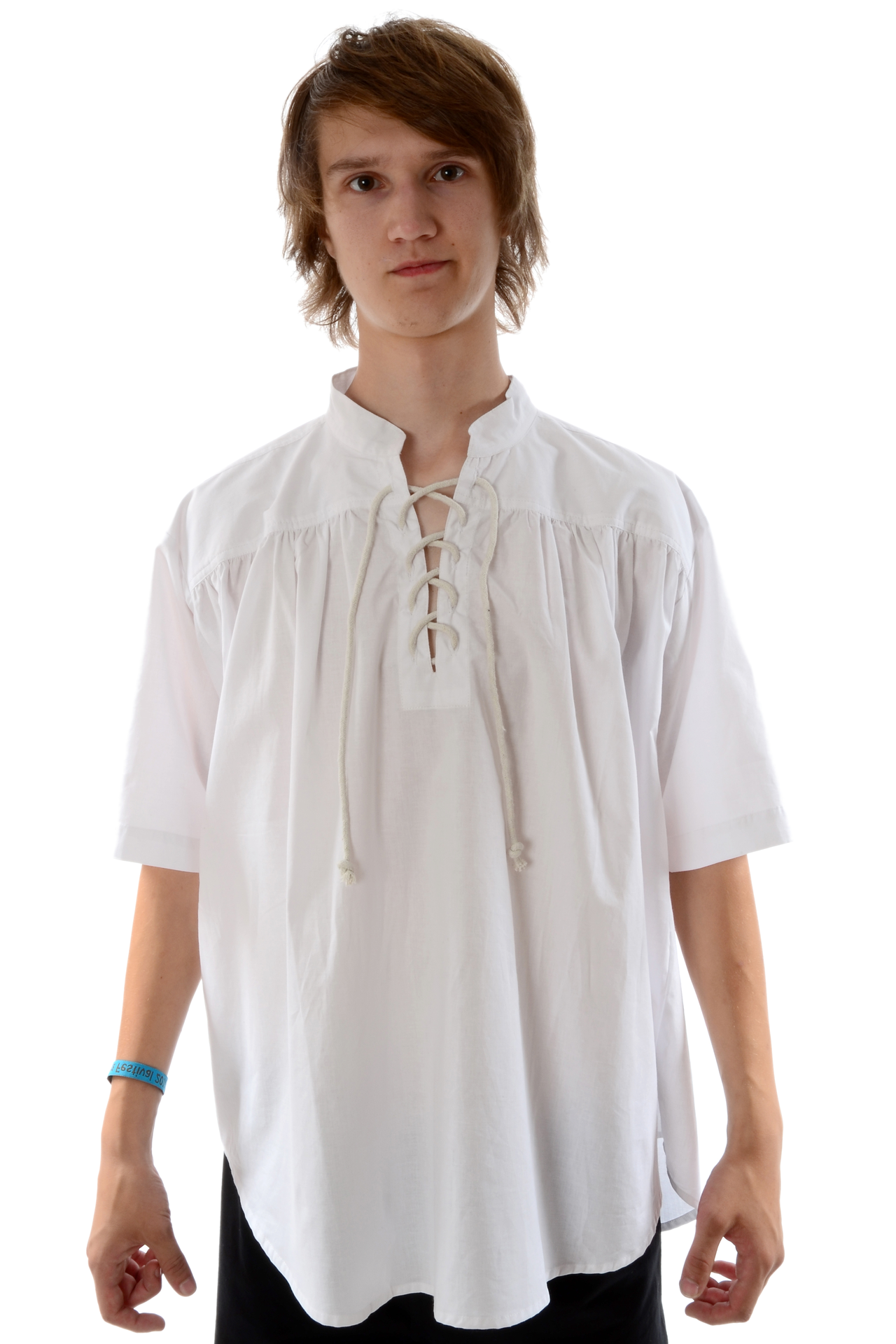 Pirate lace-up shirt with puffed sleeves and loose fit made of thin fabric. The Lace-up Shirt Klingsor short sleeves is available in the color white and the sizes S, M, L, XL, XXL and XXXL. The item is made of cotton and machine washable at 40°C. The Pirat lace-up shirt comes without accessoires.