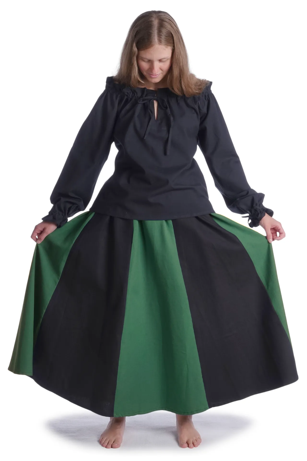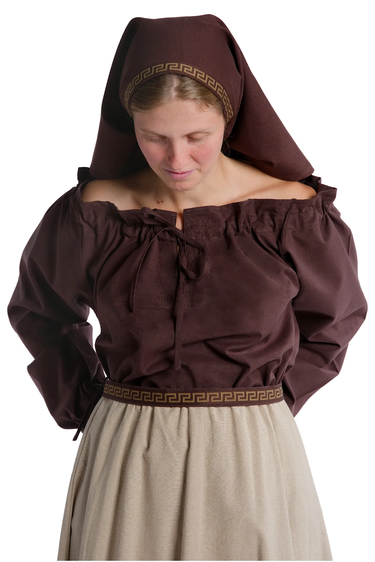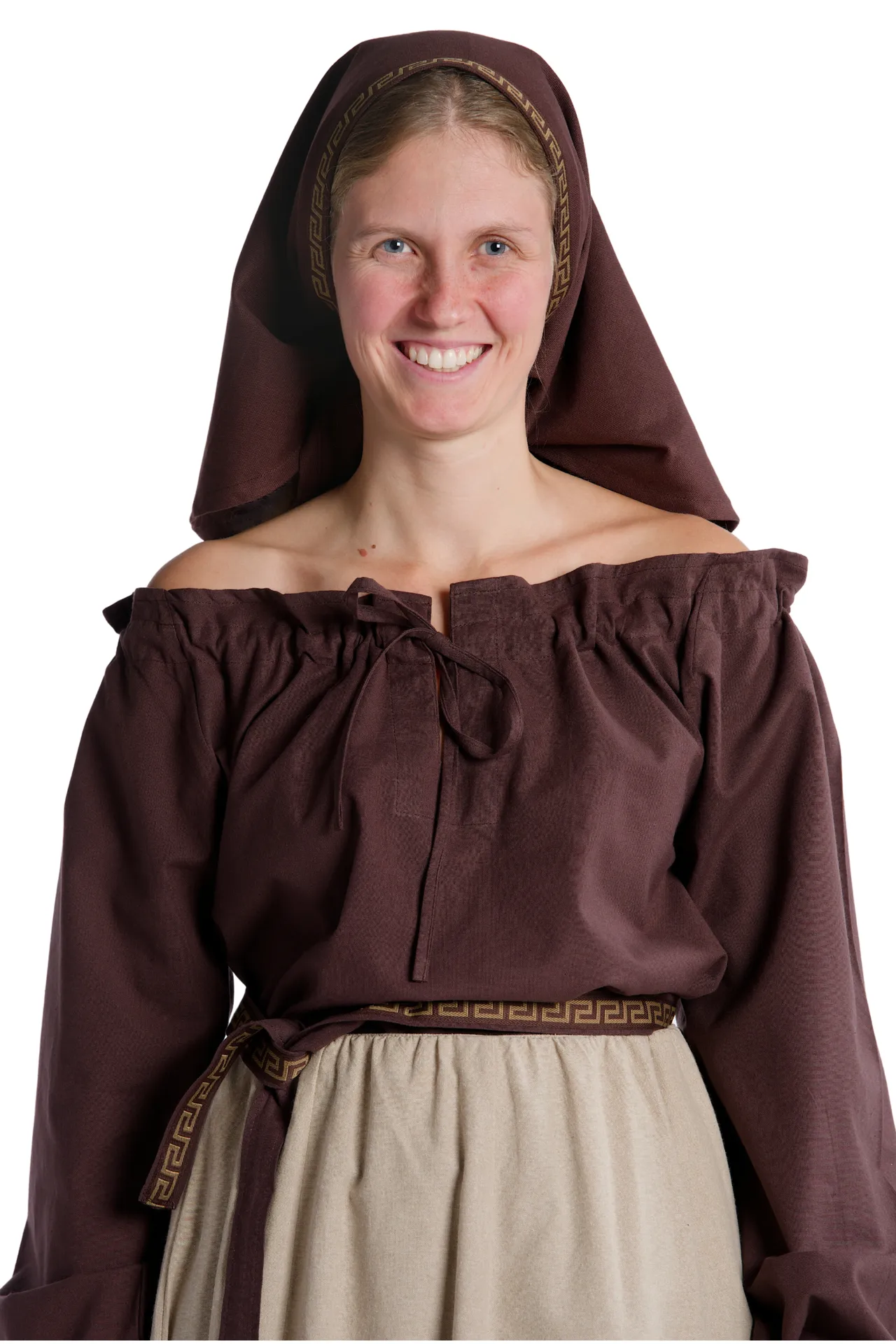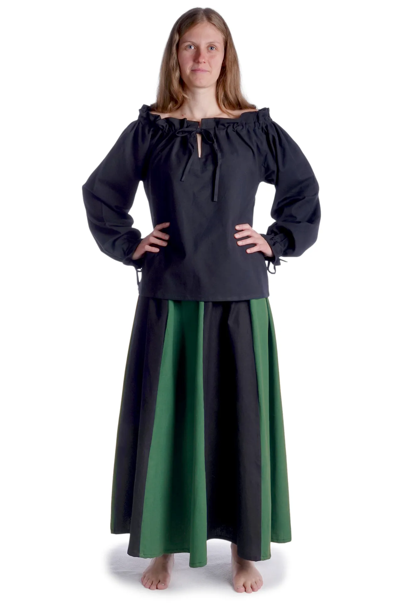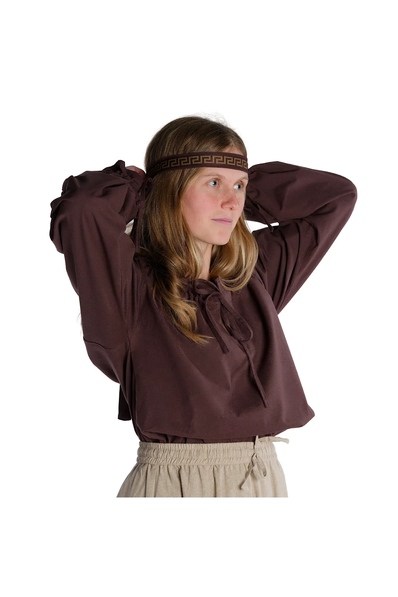 With the historic Blouse Gotelinde are you well dressed at medieval events of all kinds, as the blouse can be combined in many ways. The medieval garment can be worn for visiting Medieval markets, LARP/fantasy events, role-playing, re-enactment, Halloween or carnival. The blouse is suitable and comfortable at the same time, as well it is perfectly suitable for movement such as required for role-playing or reenactment of a battle.