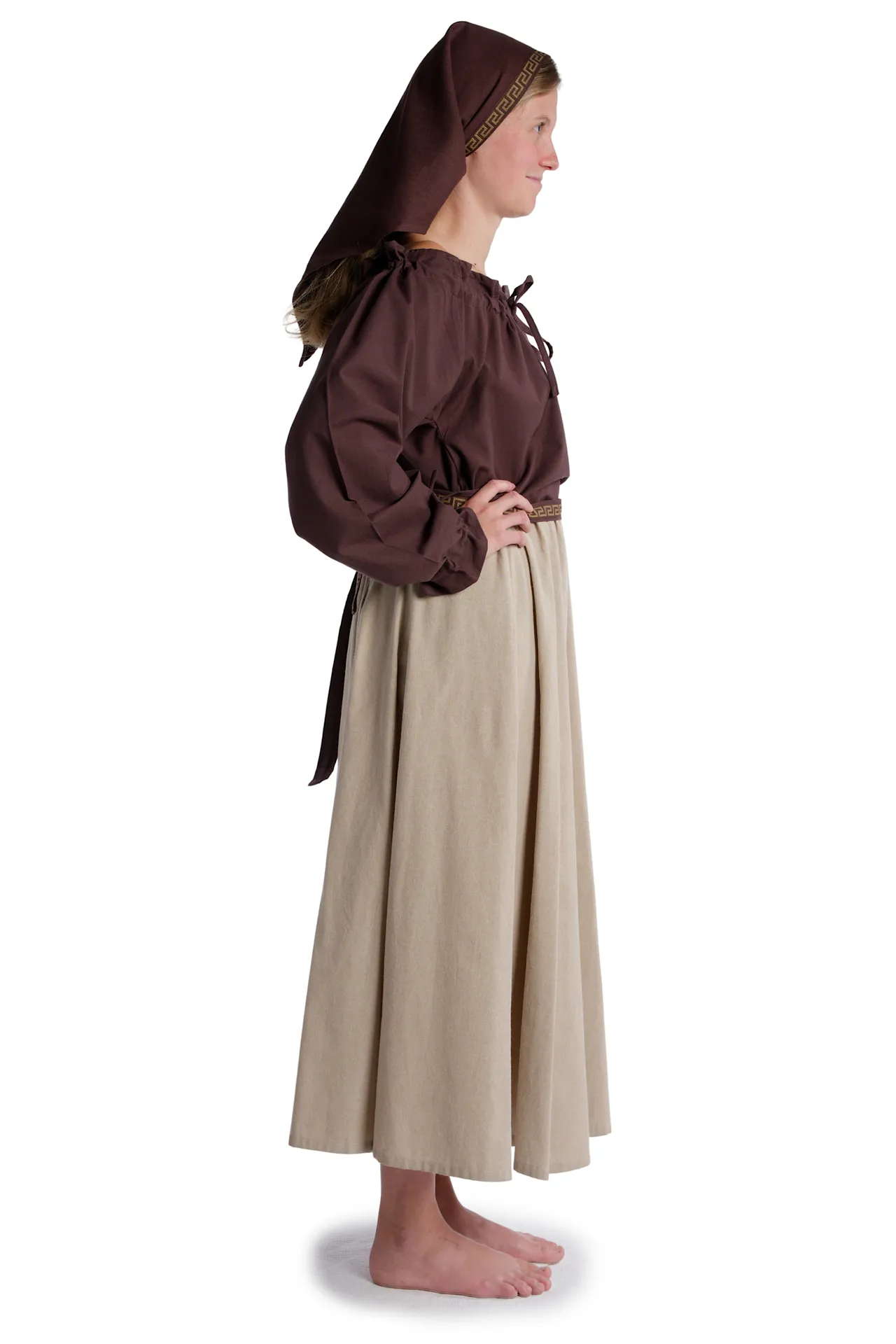 The medieval garb design was inspired by the traditional wear of the knights, maiden, workers, nobles and many more living in the Middle Ages. Furthermore the research of historic costumes and trends within the medieval fashion went as well into the design. Our HEMAD garments are designed in Bavaria, Germany and have been ethically produced in Kathmandu, Nepal.