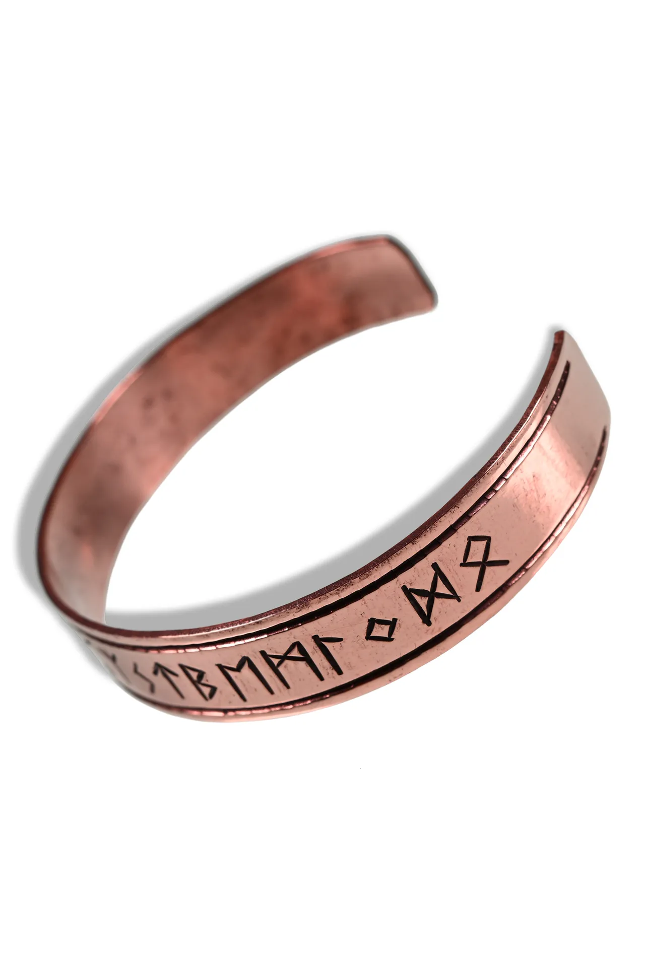 „Runar“ in Kupfer ist kernig und ehrlich. Das Runenband im älteren Futhark bleibt klar erkennbar, während das Material einen sehr authentischen Charakter mitbringt. Ideal, wenn dein Outfit nach Handwerk, Reise oder Lagerleben aussehen soll.