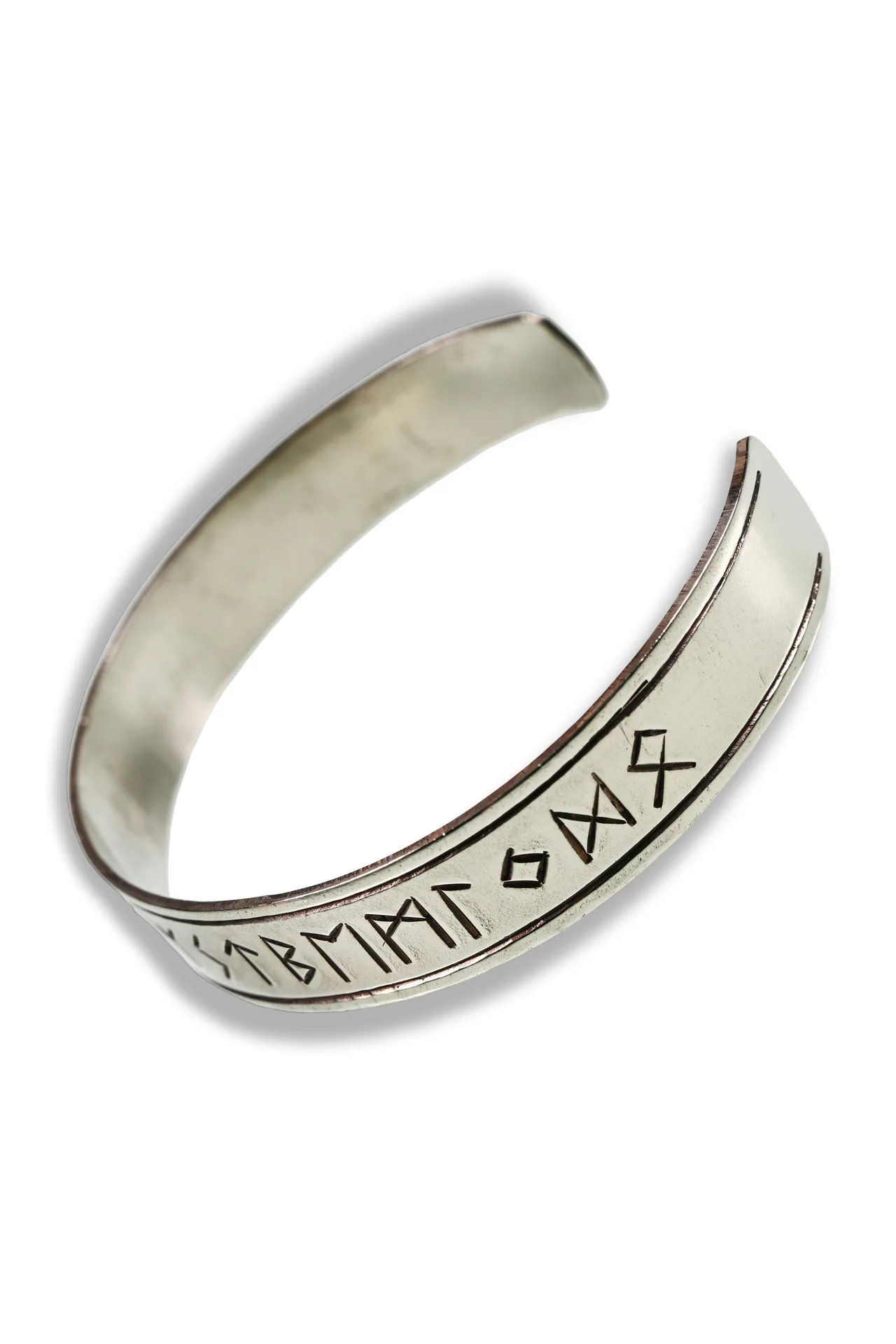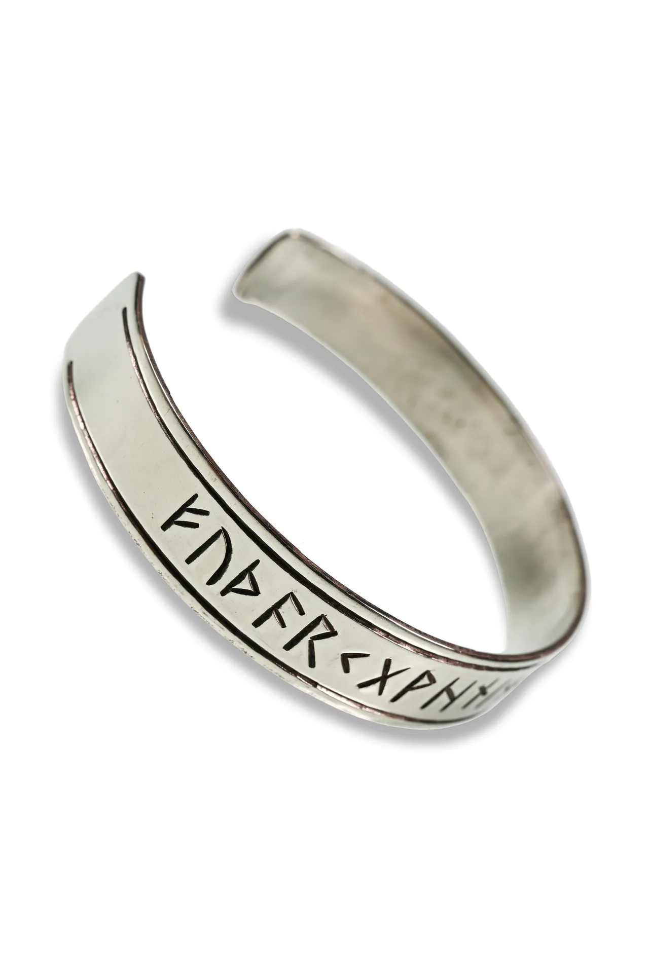 „Runar“ in Silberoptik ist die Variante für alle, die Runen tragen wollen, ohne dass der Schmuck „laut“ wird. Das Runenband ist als älteres Futhark ausgeführt – archaisch, klar, gut lesbar im Stil.