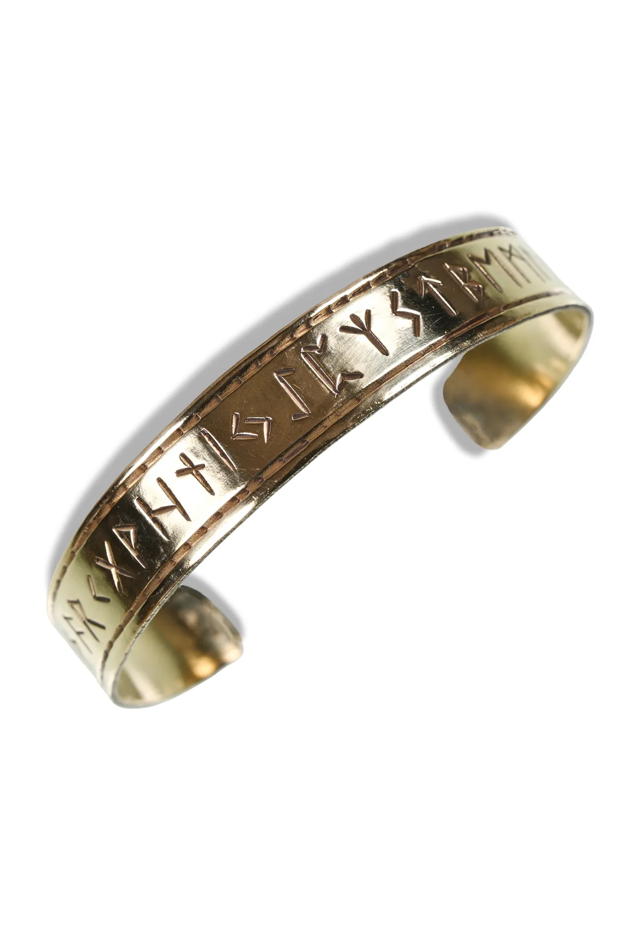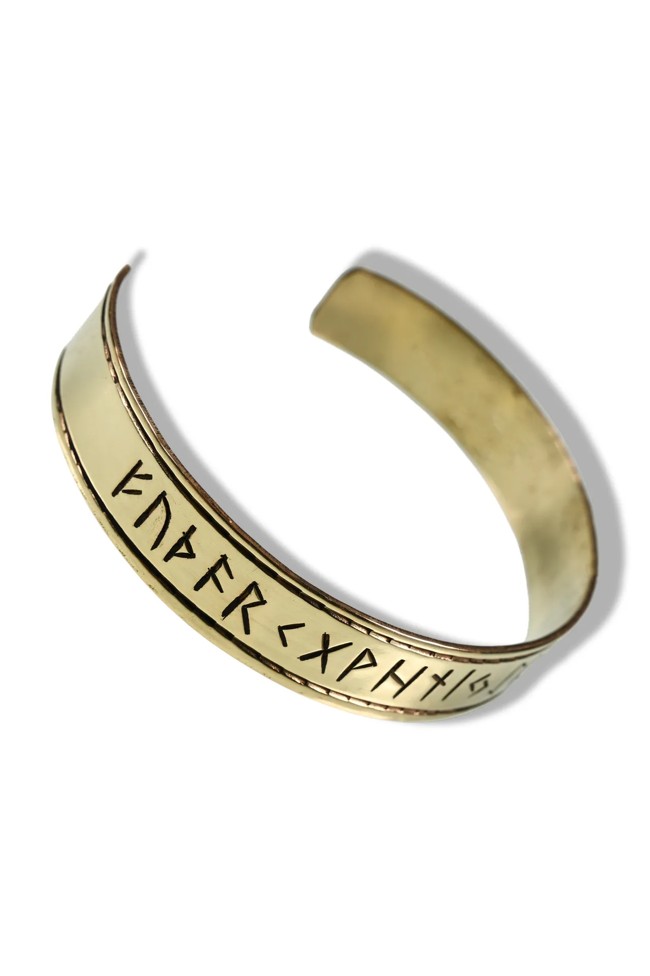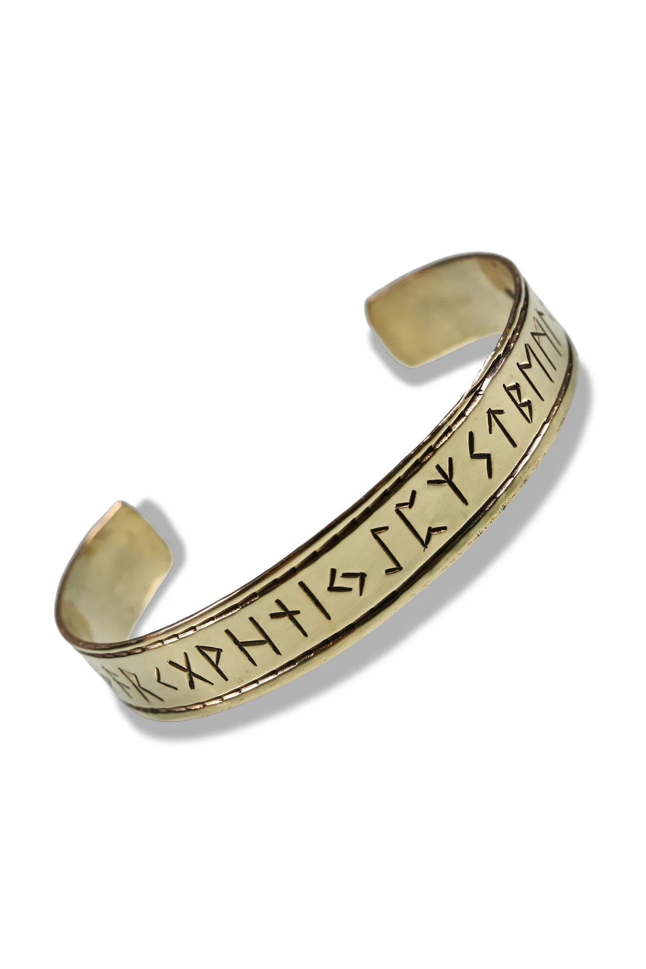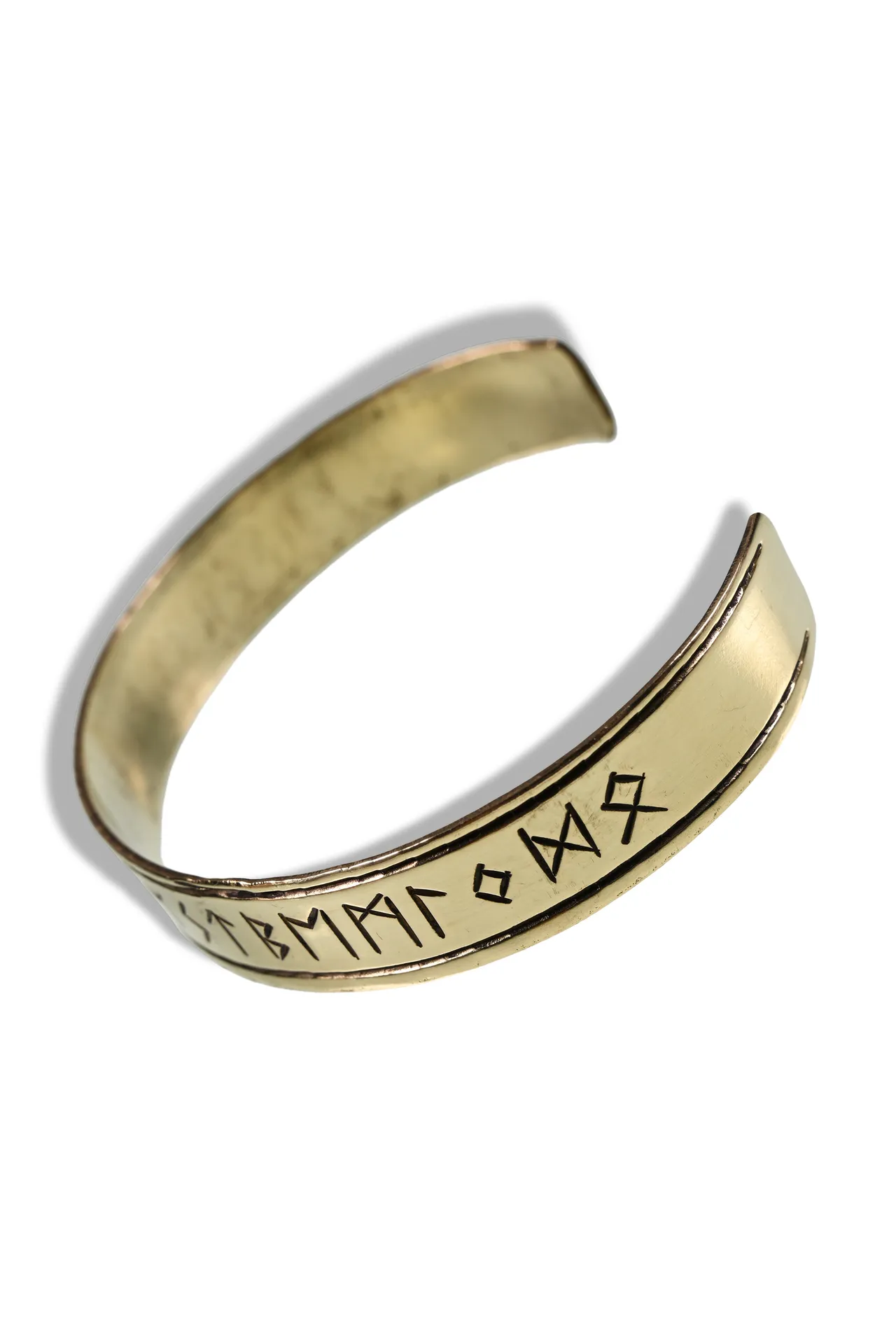 „Trygve“ ist für alle gedacht, die am Handgelenk ein klares Statement setzen wollen – ohne überladene Ornamente. Das Runenband im älteren Futhark gibt dem Armreif die richtige archaische Linie, die zu nordischen Settings passt.