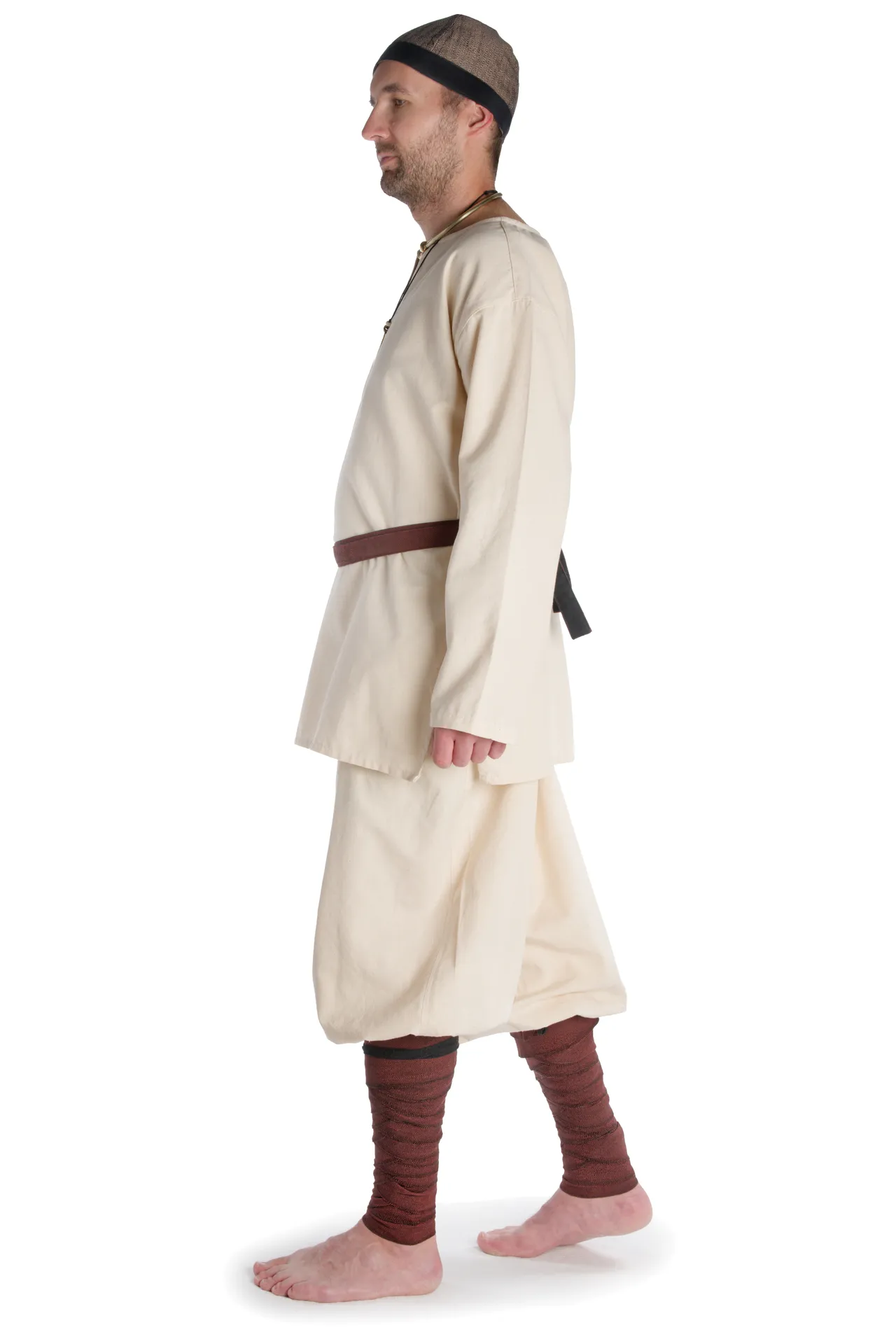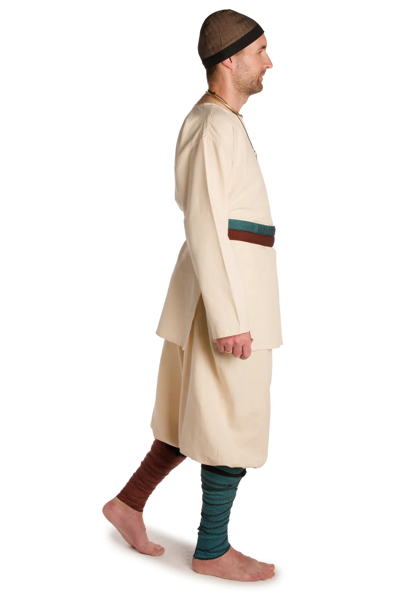 Dieser mittelalterliche Gürtel "Arvid" besteht aus naturbelassener Baumwolle. Dieses Textil besticht nicht nur mit einem ihrer langlebige und feinen Stoffqualität geschuldeten hohen Tragekomfort, sondern auch durch ihre Originalgetreue. Denn die ausschließliche Verwendung von natürlichen Stoffmaterial war typisch für die Epoche der Wikinger.