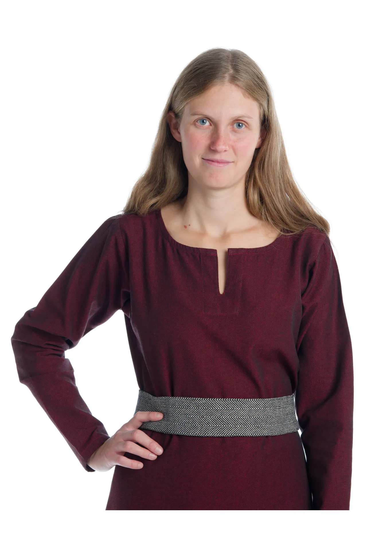 Dieser historische Gürtel "Ermelind" für Damen besteht aus naturbelassener Baumwolle. Dieses Textil besticht nicht nur robuste Stoffqualität und hohen Tragekomfort, sondern auch durch ihre Originalgetreue. Denn die ausschließliche Verwendung von natürlichen Stoffmaterial war typisch für die Epoche der Wikinger.