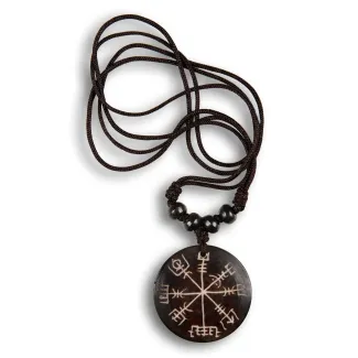 Der runde Anhänger „Vegvísir“ trägt im Zentrum ein Zeichen, das bis heute mit Wegweisung, Schutz und innerer Standhaftigkeit verbunden wird. Durch die runde Form und den klaren Kontrast zwischen dunklem Horn und heller Verzierung entsteht ein Schmuckstück mit starker Präsenz, das sofort ins Auge fällt, ohne überladen zu wirken. Mit 3,5 cm Durchmesser eignet sich der Anhänger hervorragend als markantes Detail für Gewandung und Alltag.