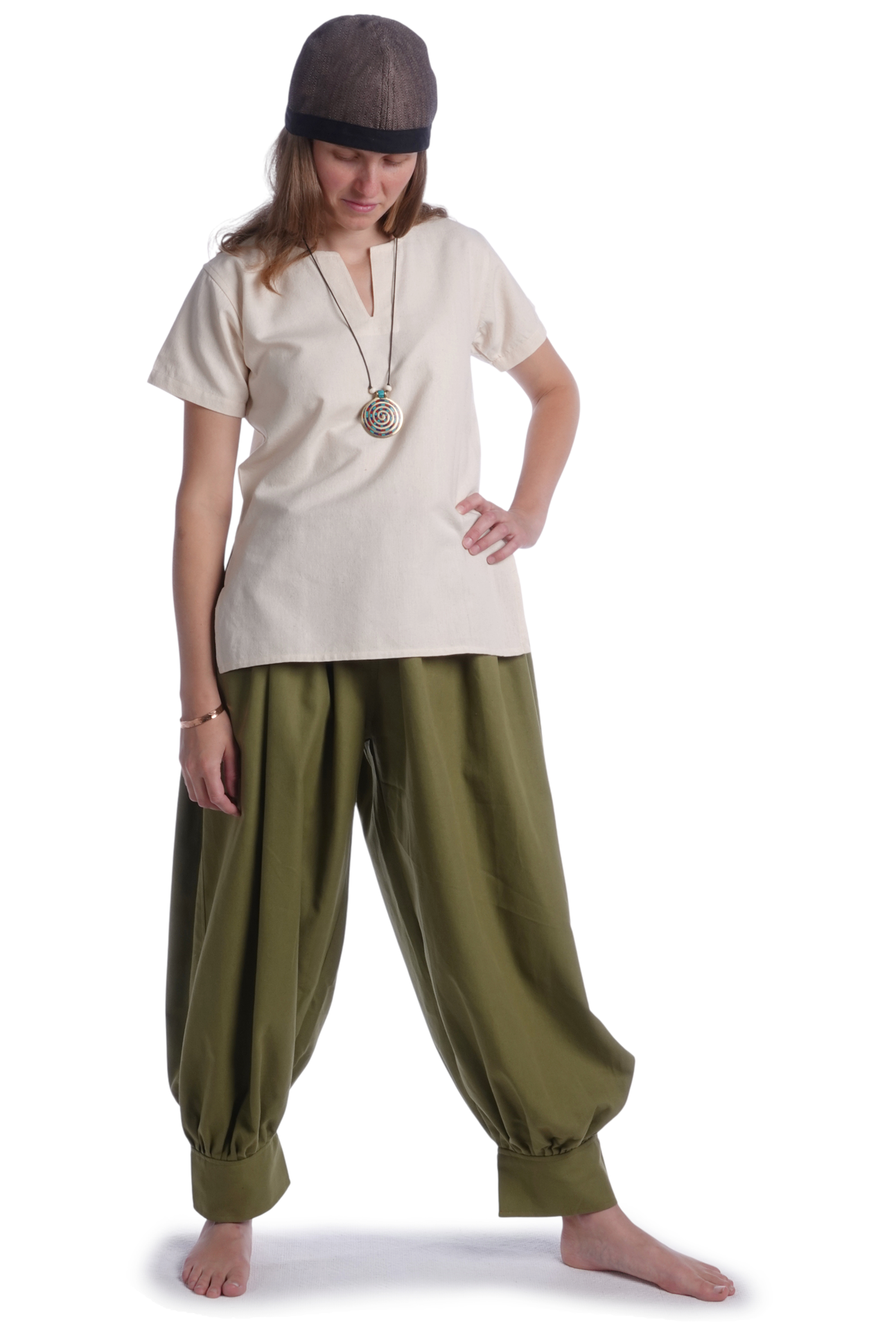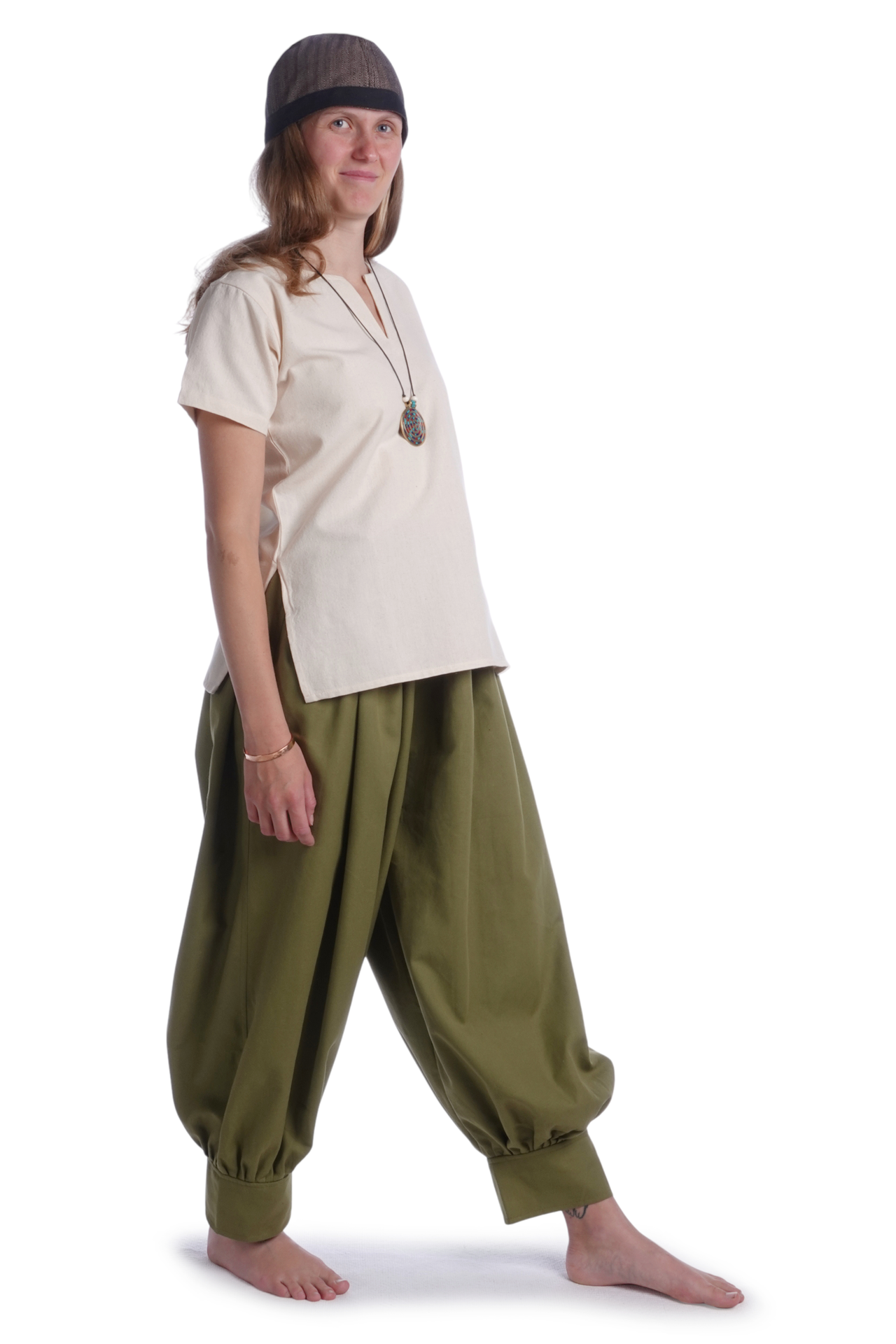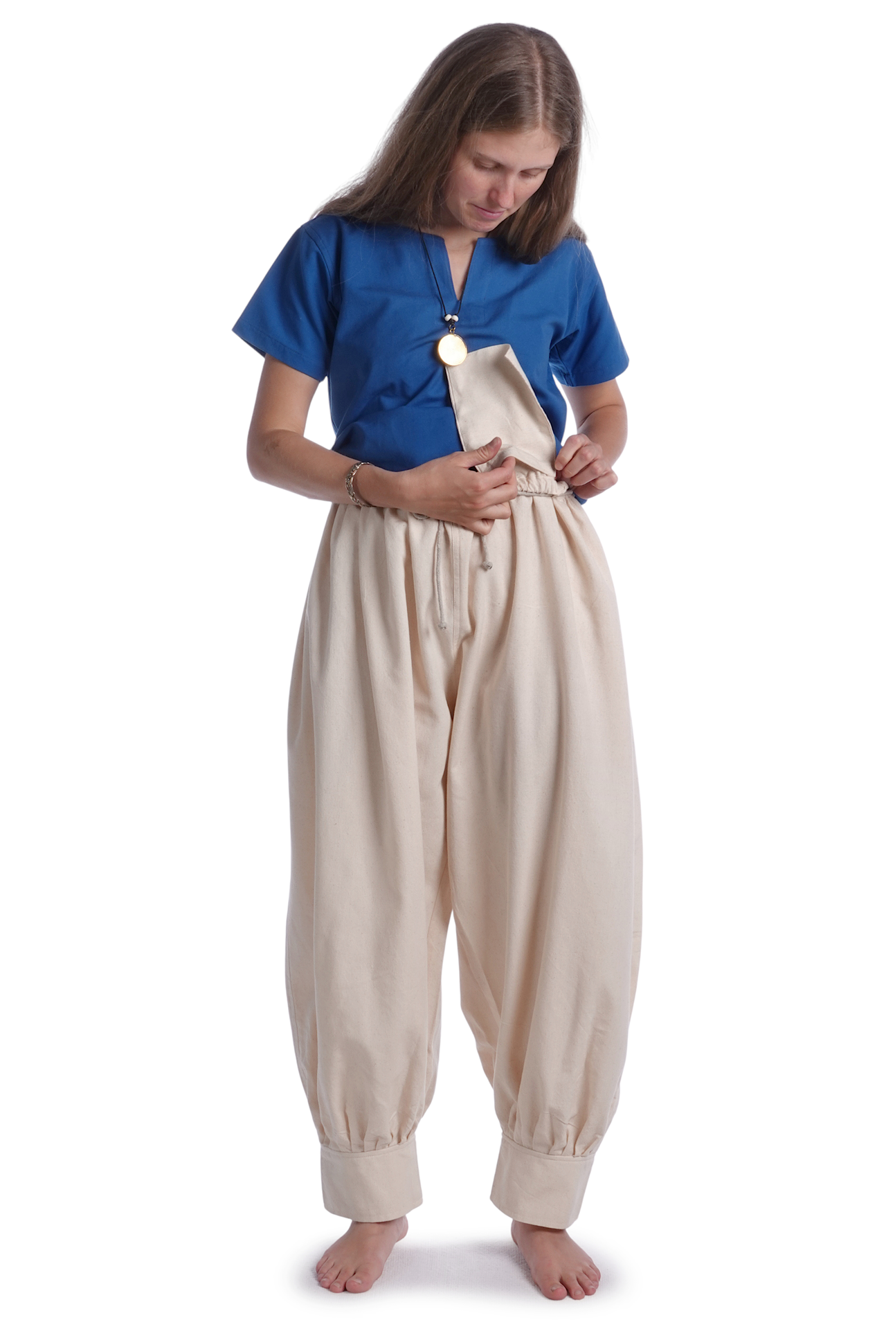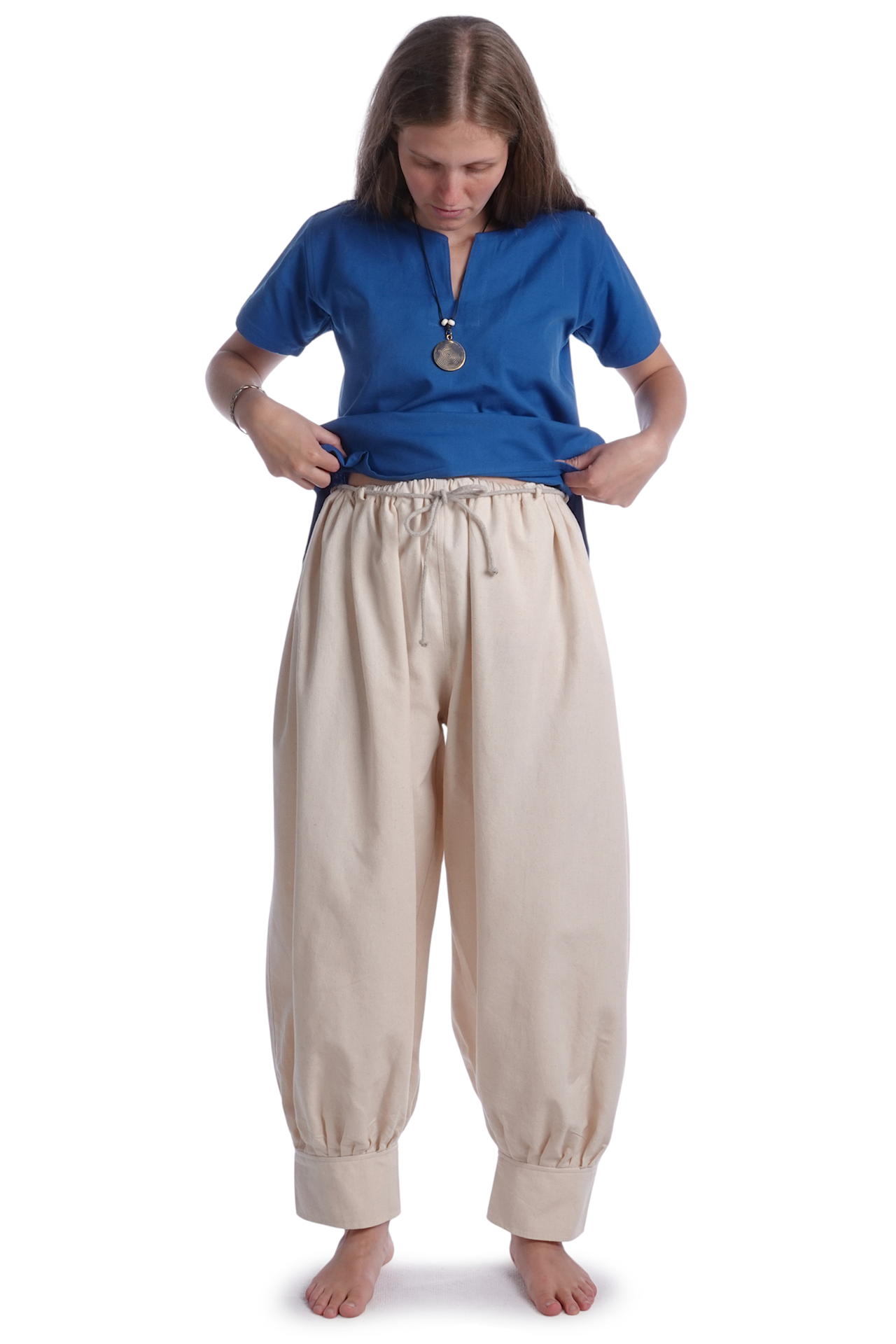 Wikinger Rus Hose Eydis aus einfarbiger Baumwolle mit weitgeschnittenem Bein.